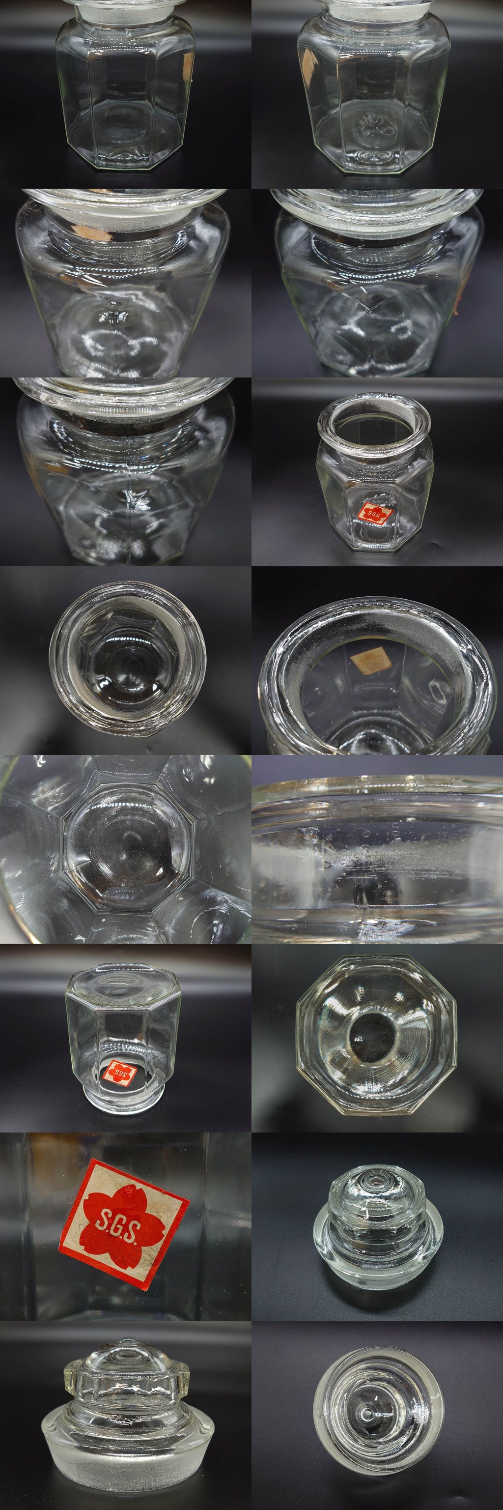 R-076200 大正~昭和初期 昭和レトロ 蓋付きガラス瓶2個セット(八角、キャニスター、硝子、ガラスビン、菓子瓶) 收藏
