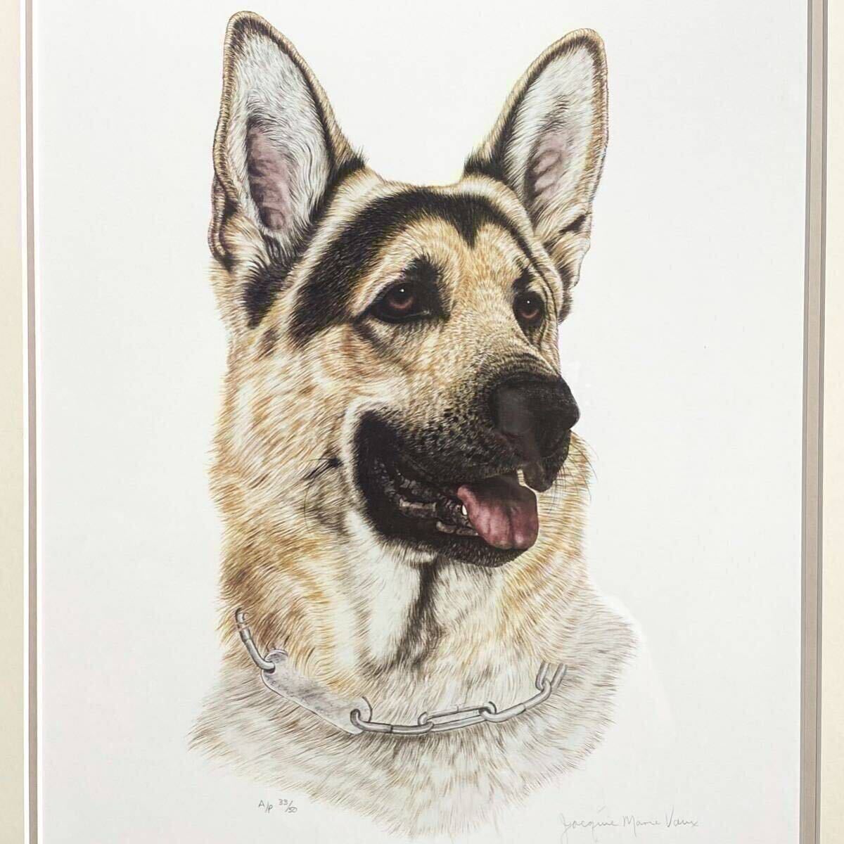 【真作】世界最高峰の動物作家 ジャッキー・マリー・ヴォーグ 「ジャーマンシェパード」直筆サイン 限定版画 JACQUIE MARIE VAUXリトグラフ 收藏