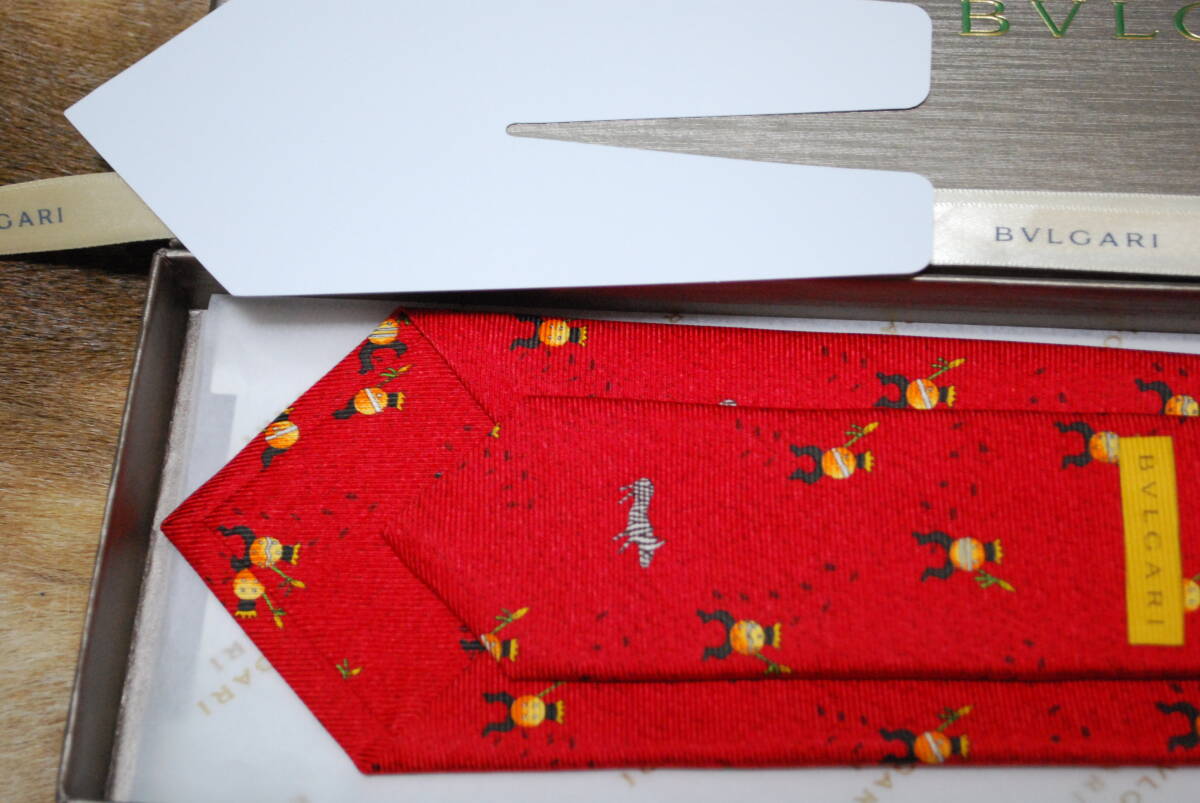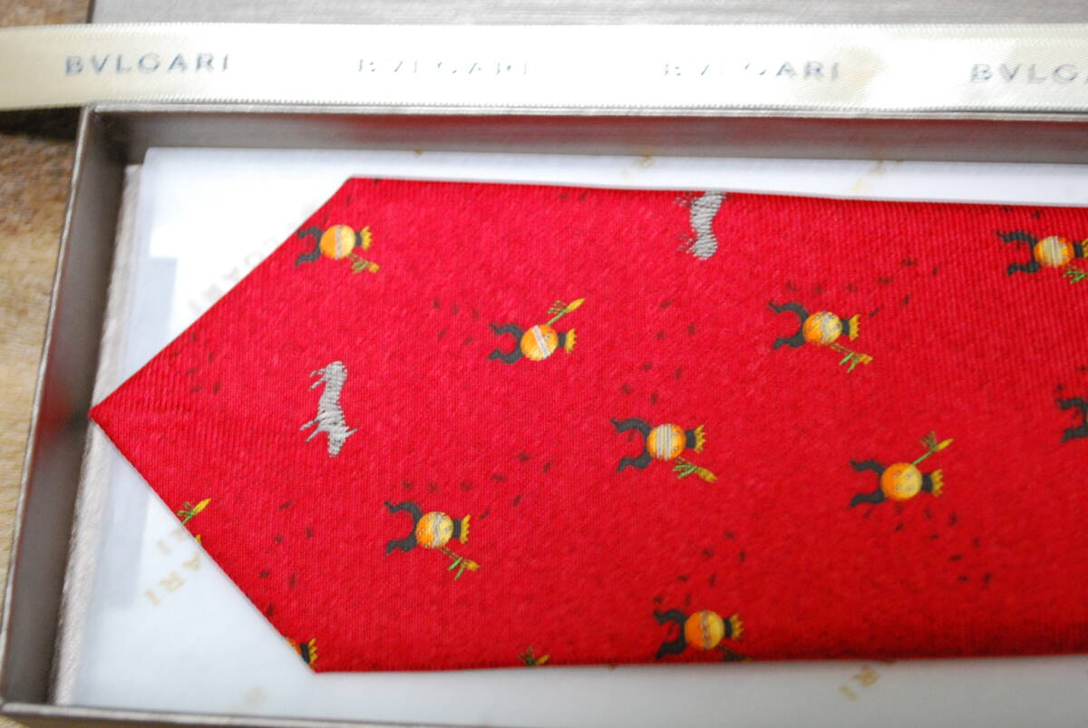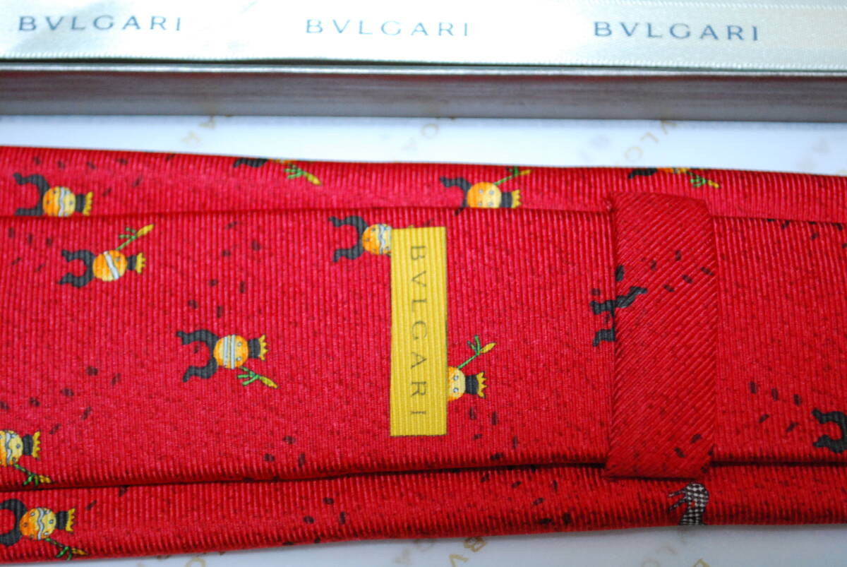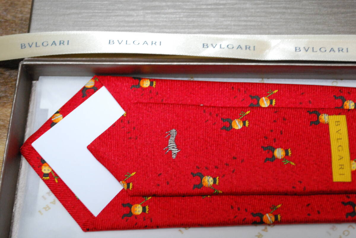 写真のものが全てのブルガリシルク100%ネクタイ(リボン・ネクタイ専用箱付き)です。タグはありませんが新品未使用品ですので、傷やほつれ、擦れ、汚れの無い、ピッカピカのネクタイです。大剣先幅は約8.5センチあります。リボン&ネクタイ専用箱付きですので、プレゼント用にいかがでしょうか♪画像を良くご覧の上、ノークレームノーリターンで宜しくお願いいたします。