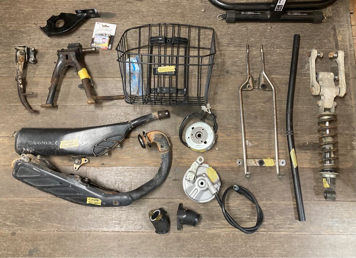 | 商品説明 | ご覧いただきありがとうございます。 自己紹介の確認もお願いいたします。 インボイス対応しています。 必要な方は落札後にメッセージにてお伝えください。 倉庫保管品になります。 セット内容は以下になります。 【TLM220R MD23-1300】マフラー サイレンサー チャンバー 【チャンプ 54V】フロントバスケット カゴ 【GSX-R750 GR71G-101】サイドスタンド 【SA36J-126】メーターギア ワイヤー ブレーキ ドラム 【モンキー】Z50J バックフェンダーステー リアフェンダー 【スーパーカブ50 C50-091】センタースタンド 【ジョグ ZR SA39J】ステーターコイル フライホイール 【ドラッグスター400 4TR VH01J】インマニ 【GPX250R-2 EX250E-026】ニンジャ ninja リアサス 【パルフレイ PALFREY NC50-511】タンクステー 【XR100 モタード HD13】ハンドル (約70センチ) ご検討よろしくお願いします。 必要に応じて整備ください。 傷等、写真でご確認の上、ご入札をお願いいたします。 ※注意して保管しておりますが、 撮影時になかった傷、汚れが生じる場合がございます □質問にはなるべく対応いたしますが、記載済みの内容についてや、 程度に関する質問で個人の主観が入るもの (どのくらい錆びがありますか?気になる傷はありますか?等)や、 製品の保証を求めるもの(自走で帰れますか?不具合はありませんか?等)には お答えしかねる場合がございます。 稀に終了直前に入札の取り消しを申し出る方がおりますが、 対応不可能です。責任をもってご入札をお願いいたします。 ※お使いのモニター設定、お部屋の照明等により 実際の商品と色味が異なる場合がございます。 ※状態等、完璧な物をご希望の方、神経質な方は入札をご遠慮下さい ※返品には対応できませんのでご了承下さい |