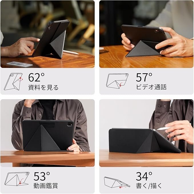 iPad Pro11ケース ブラック 横置&縦置 タブレットスタンド 磁気吸着 超スリム 軽量 極薄 衝撃保護 LL0235 收藏