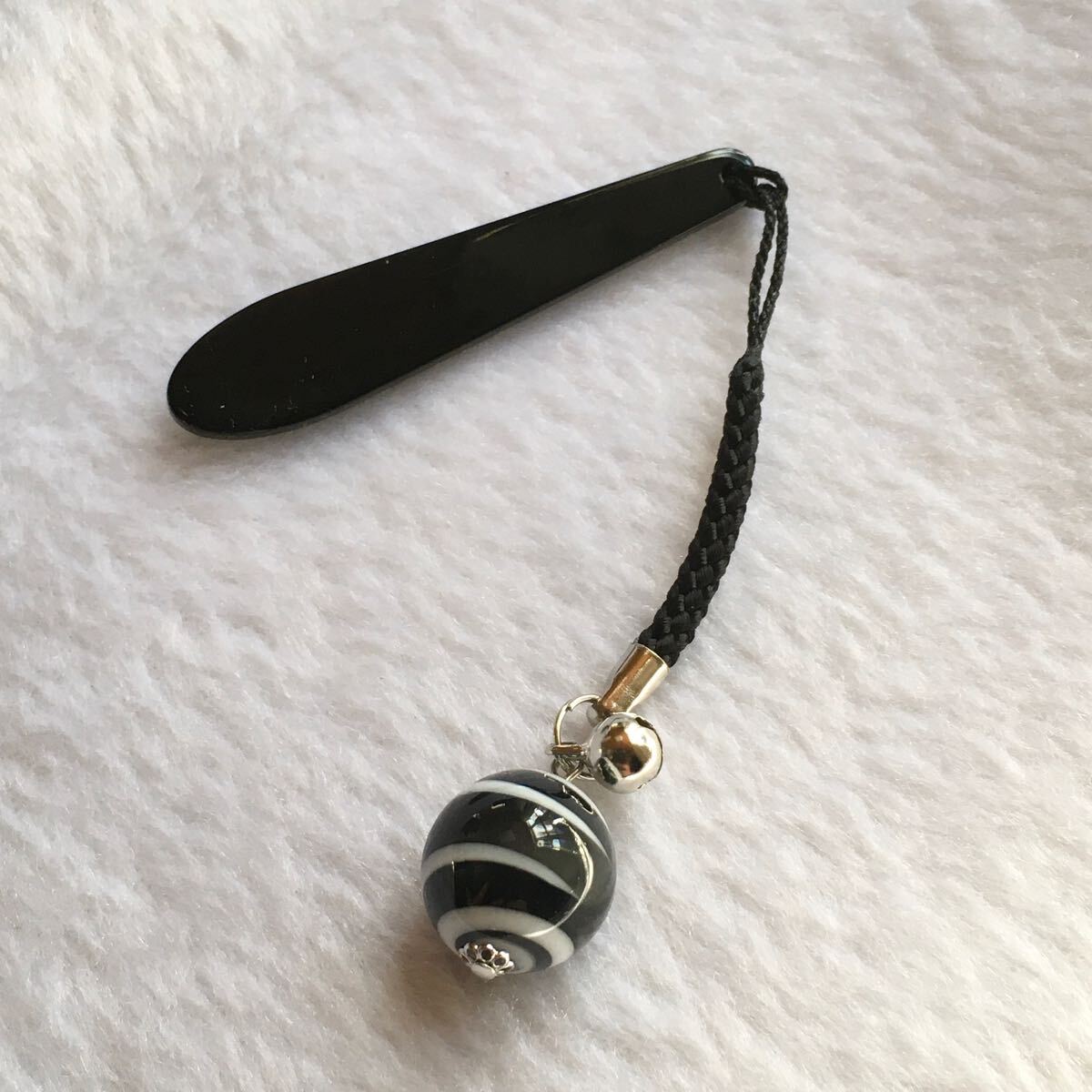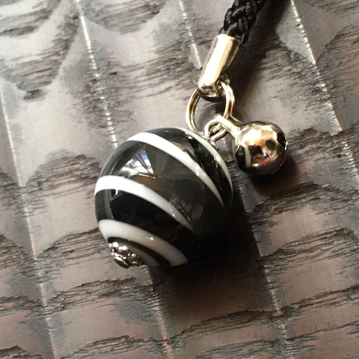 (送料無料)とんぼ玉の帯飾り(手作りガラス)ホワイトブラックマーブル 收藏