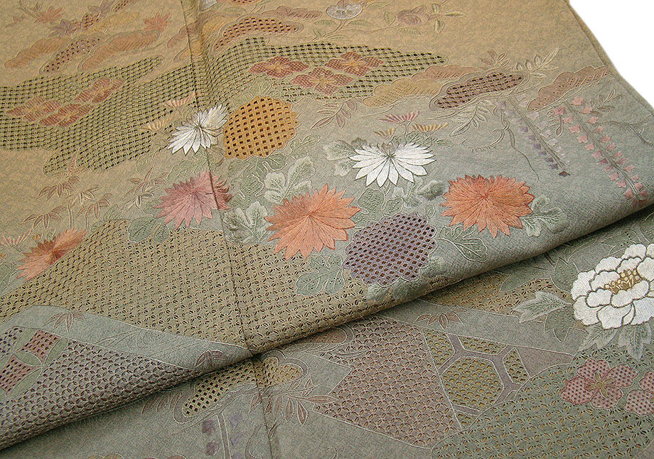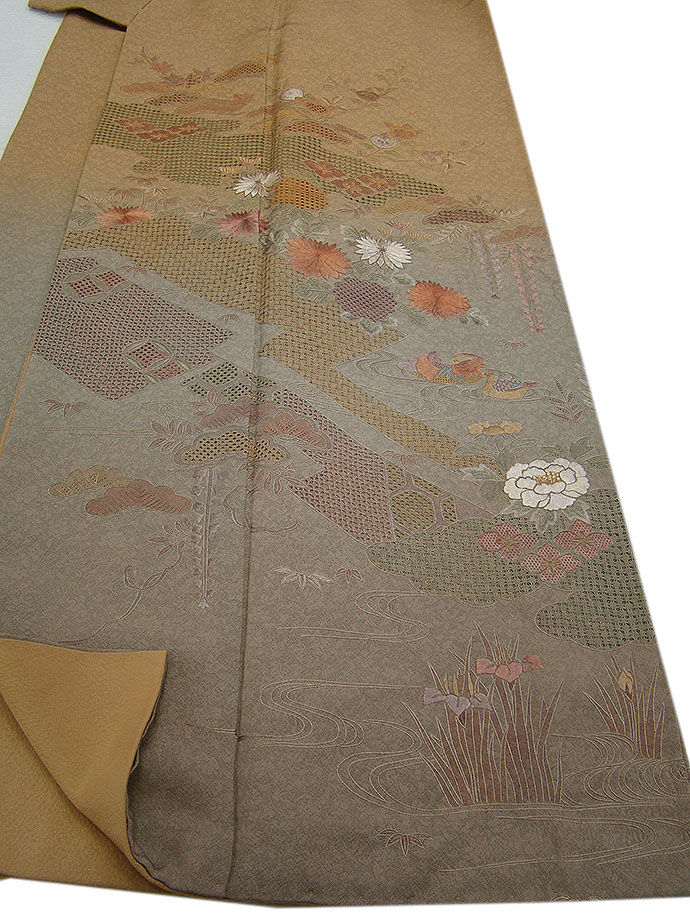 ※着る人や見る人を華やかなオーラで包み、薫り高い装いを謳い、艶麗優美な 着物スタイリングを完成させる匠の手技を駆使した総刺繍の豪華な訪問着です。 高度な技法により奥行きや立体感のある生き生きとした仕上がりを演出する 神秘的な空間美さえ纏う優美な雰囲気漂う気品に満ち溢れた逸品です。 パーティー、慶事の宴、冠婚祭、結婚披露宴、お茶会、社交着等々。 40代~70代迄幅広く着用出来ます。 身長156cm~162cmの貴女に最適です。 |