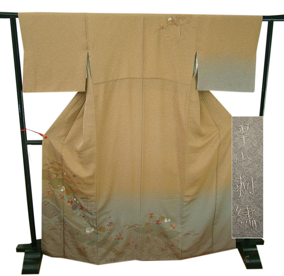 時代屋 裄67.1cm 極上縮緬地 総刺繍 附下げ 訪問着 正絹 仕立上り 袷 156cm~162cm HH1804 收藏