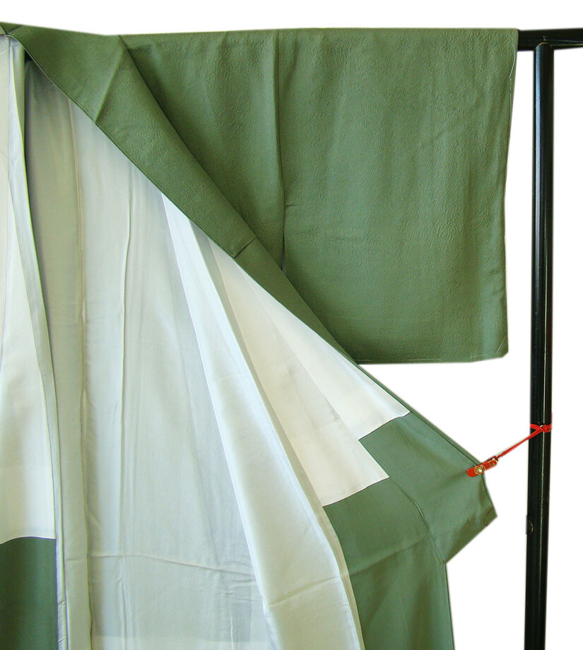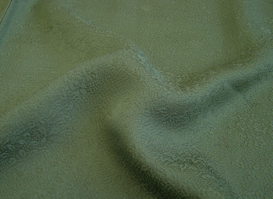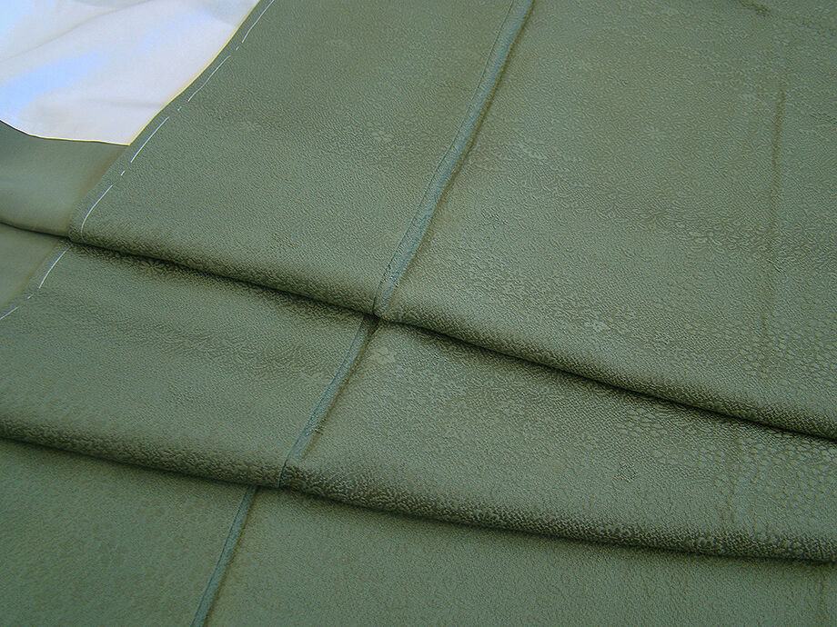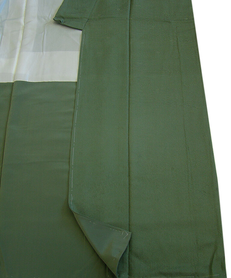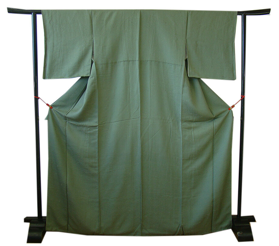 商品説明 | こちらのお品は「袷」ですので10月から5月までお召頂ければと思います。 とてもしなやかで柔らかな着心地良いぽってりとした重めのちりめん地の生地、 老竹色地に地模様入りの色無地・小紋、 八掛は共色(正絹)、幅広い年代の方にお召頂けます。 |