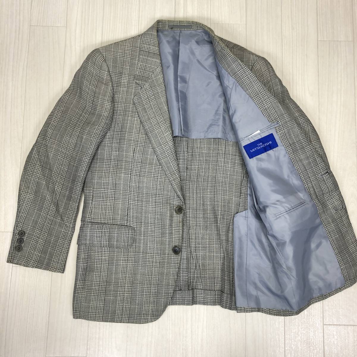 XY0520 MITSUKOSHI 三越 メンズ トップス テーラードジャケット 長袖 肩パッド 88A3 S ブラウン 茶 チェック 毛・麻 オフィスカジュアル 收藏