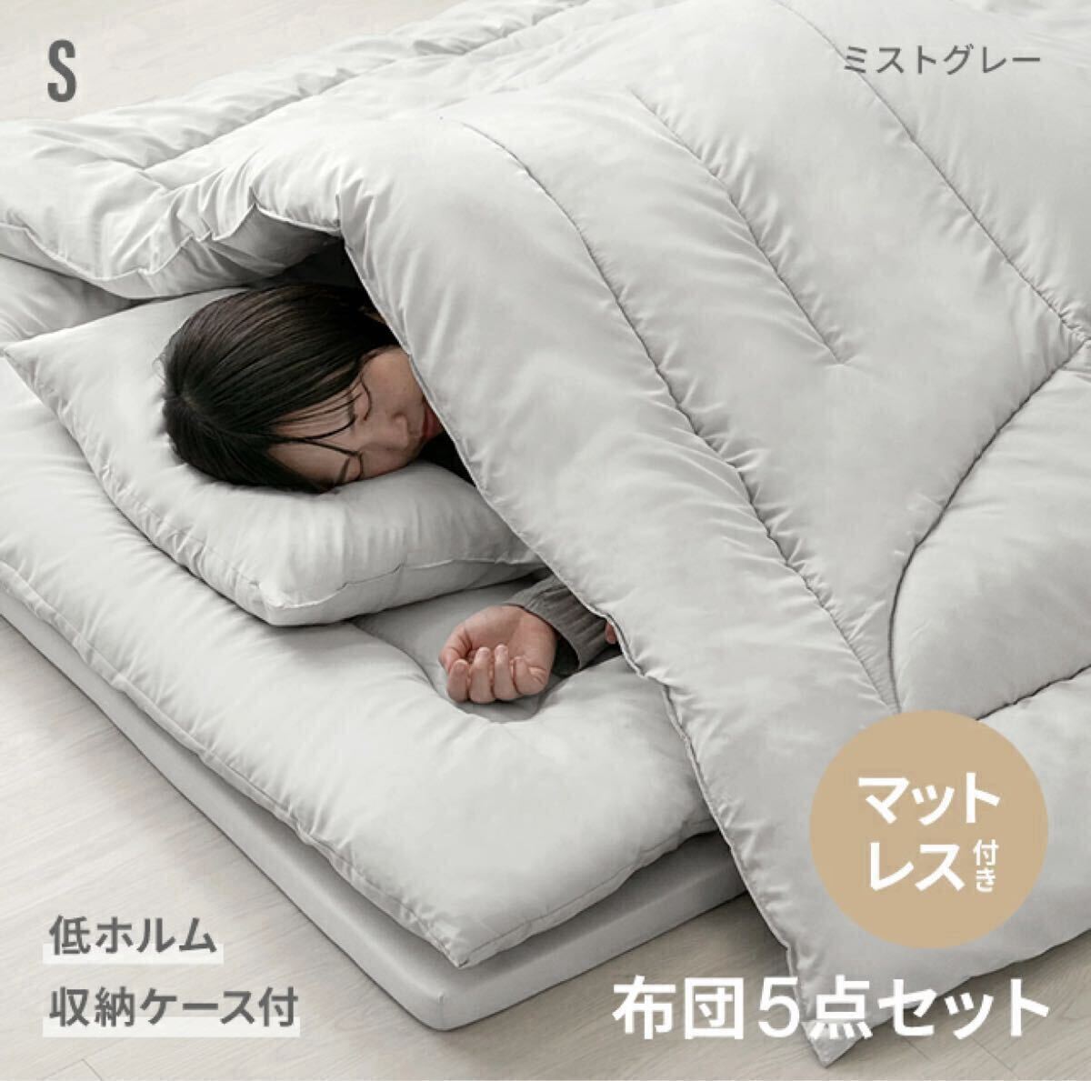 【送料無料】ふとんセット 5点セット [シングルサイズ グレー色] マットレス付きなので底付き感なし マットレス 敷ふとん 掛ふとん 枕