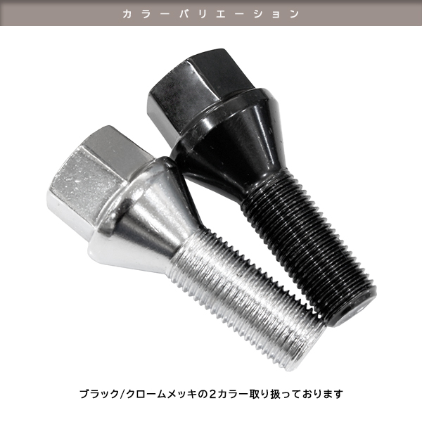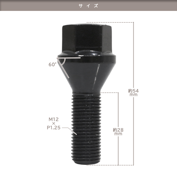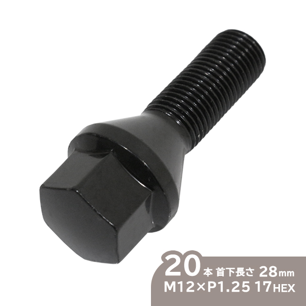 ю ラグボルト [ M12×P1.25 17HEX 60度テーパー 首下:28mm ブラック ][ 20本 ] スチール製 ホイールボルト 輸入車 收藏
