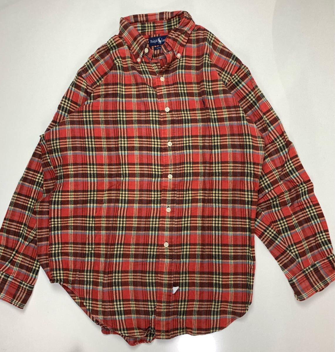 90s RALPH LAUREN ネルシャツ  長袖シャツ  チェック柄 古着 コットン 收藏