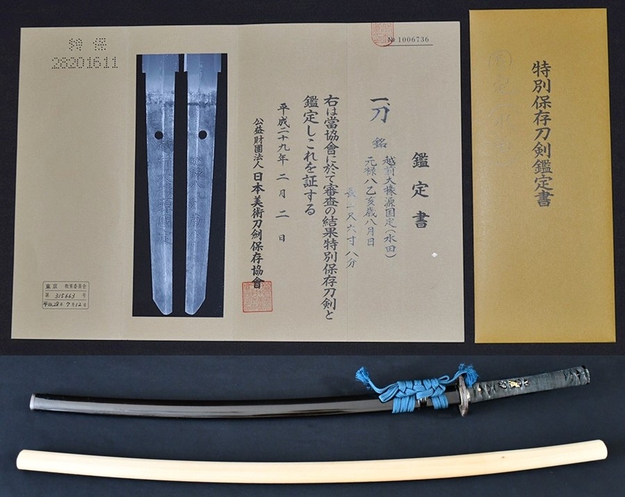 特別保存鑑定付 越前大掾源国定(水田)元禄八乙亥歳八月日 長刀 收藏