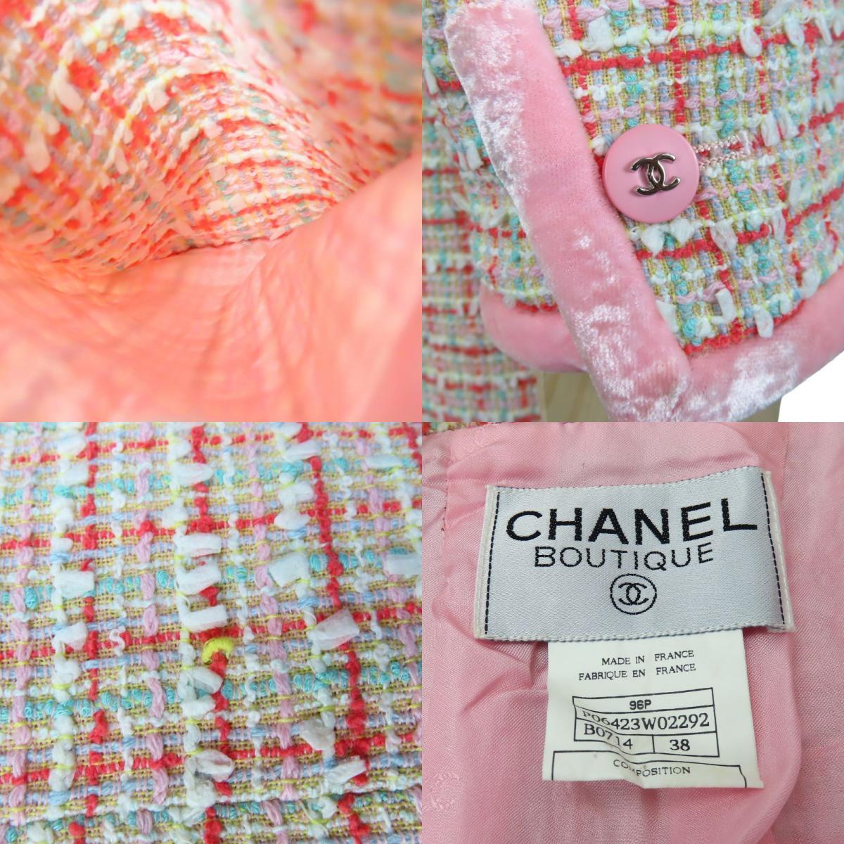中古 シャネル セットアップ 38 ウール コットン ナイロン ピンク 赤 マルチカラー ツイード ココボタン アパレル レディース 女性 收藏