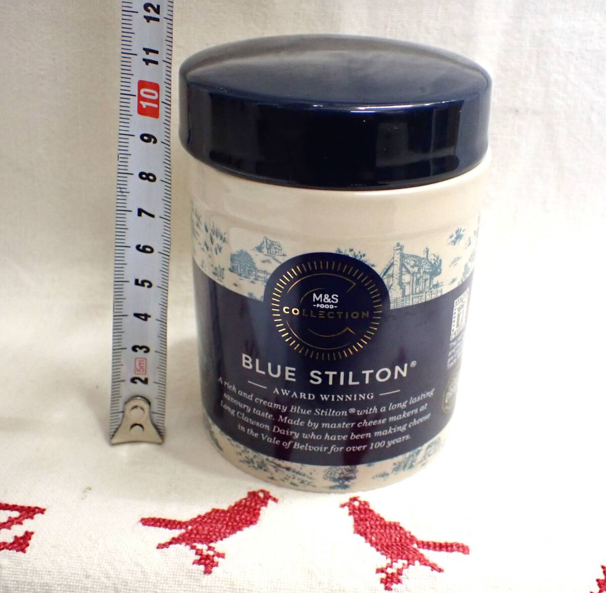 英国 ブルースティルトン容器 イギリス小物 M&S FOOD BLUE STILTON 陶器 イギリス トワルドジュイ 容器 キッチン チーズ 保存容器 收藏
