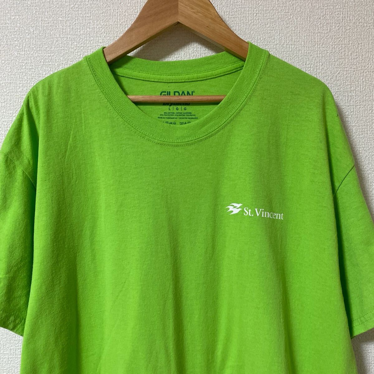 ★送料無料★ 即決 メンズ USA古着 両面プリント蛍光グリーン Tシャツ ロゴ入り GILDAN サイズL 收藏