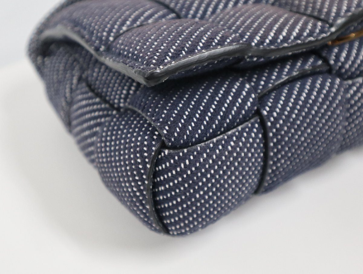 ボッテガ ヴェネタ BOTTEGA VENETA カセット パデッド デニム クロスボディバッグ インディゴブルー 美品 バッグ 收藏