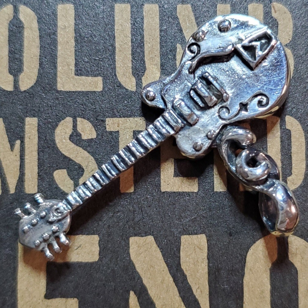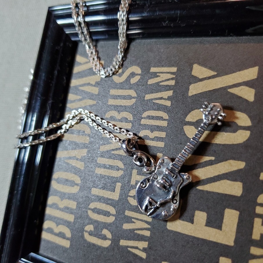 チャーム シルバー925 ペンダント ネックレス ギター エレキギター 音楽 silver925 銀 本物 重量感 メンズ チャーム かっこい n0376 收藏