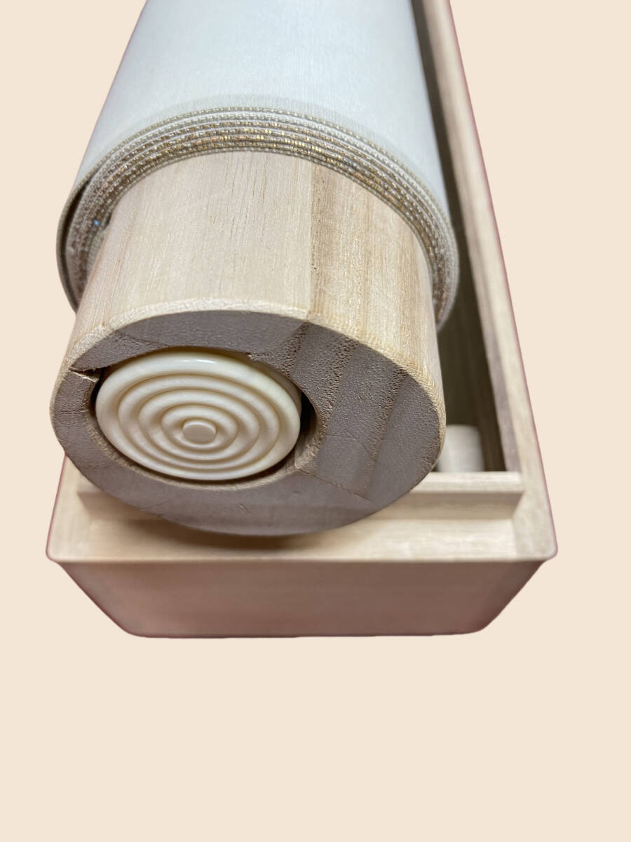 掛軸の軸先ですが、配送中の振動・気温・経年劣化等で外れてしまうことがあります。軸先の外れは、返品の対象にはなりません。大変お手数ですが、お客様ご自身での修復をお願い致します。
