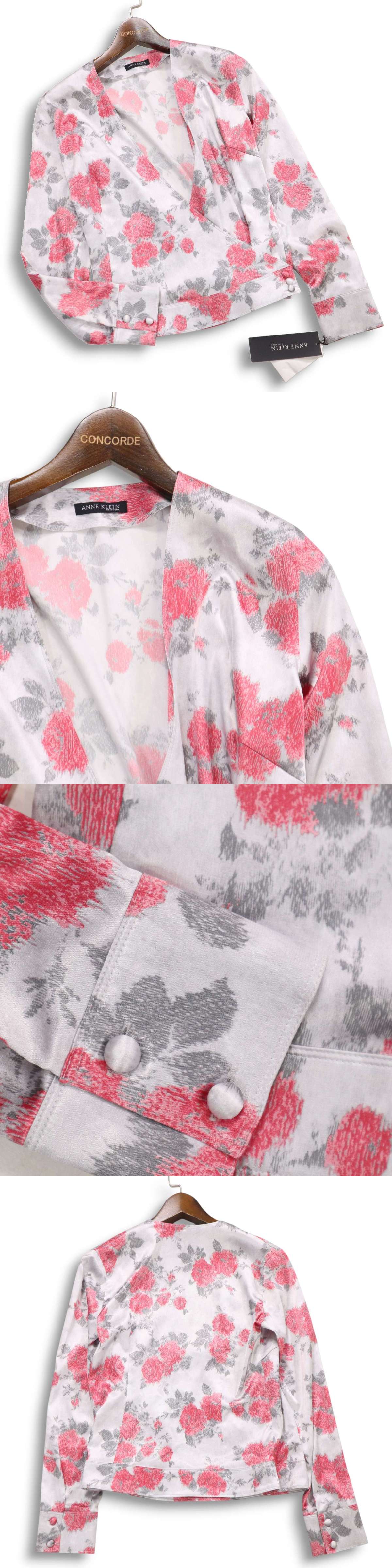 未使用★ ANNE KLEIN アンクライン 通年★ 花柄 フラワー 総柄 長袖 カシュクール ブラウス シャツ Sz.9 レディース 日本製 收藏