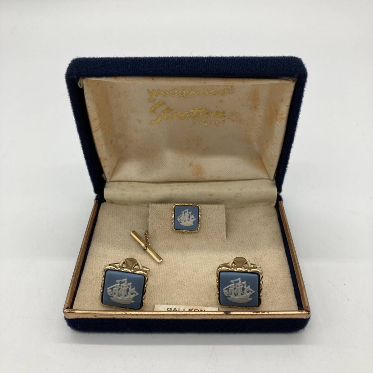 tt15736 ☆美品☆ウェッジウッド カフスボタン タイピン 3点セット 帆船【GALLEON】 ブルー 收藏