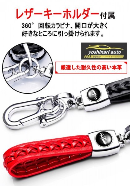【高級感】:上質な艶でクールな豪華さを演出してくれます。本キーケースを取り付けるだけで愛車のスマートキーは高級車のキーに相応しく様変わりします。スマートキー本体のエンブレムマークが見えるようにデザインされています。何気なくスマートキーを出すだけで周りの注目を集めます。愛車自慢のあなたにお勧めの逸品です。