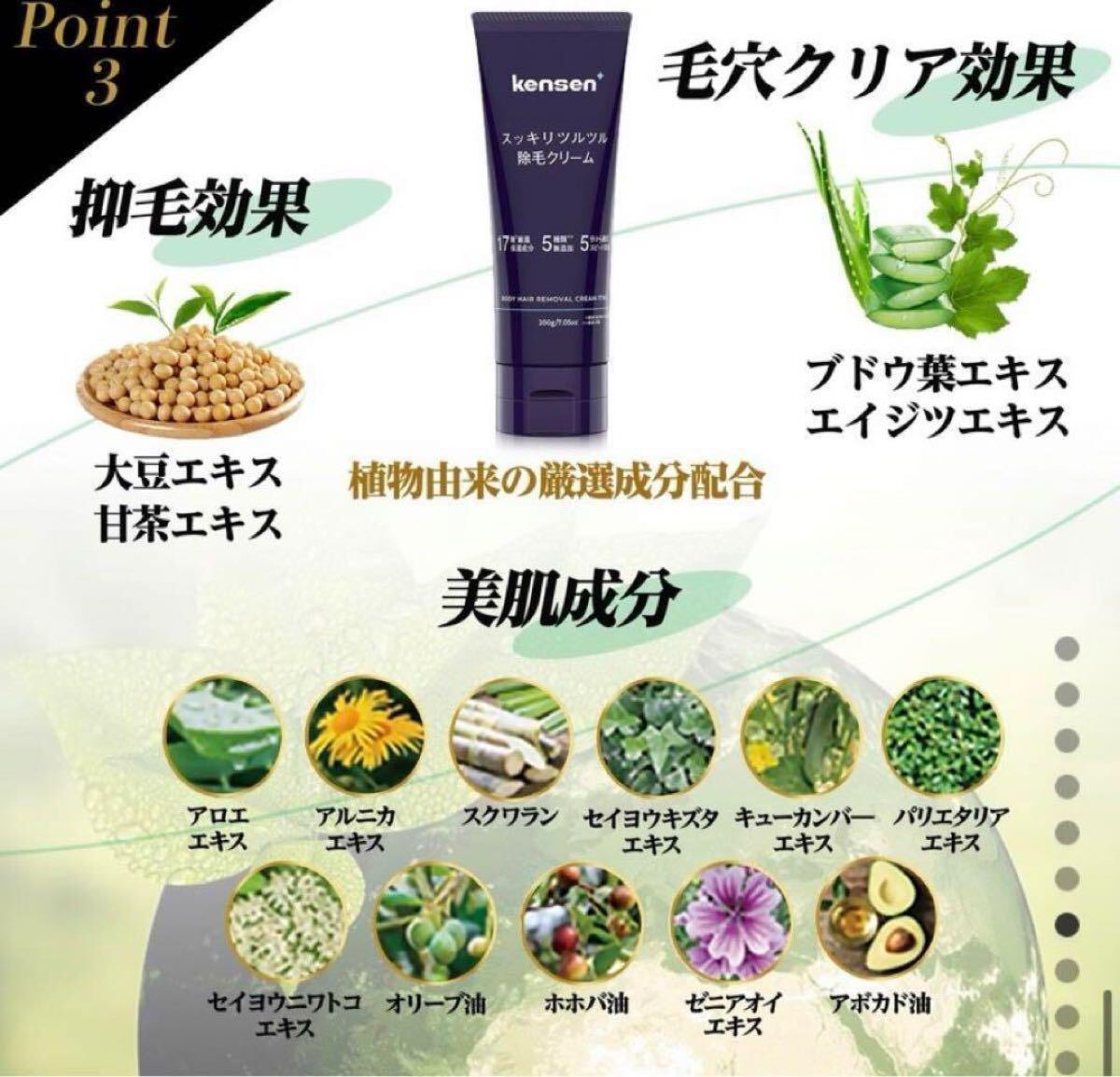 17種類の成分を配合したボディ除毛クリーム、5つの効果で肌を守ります。