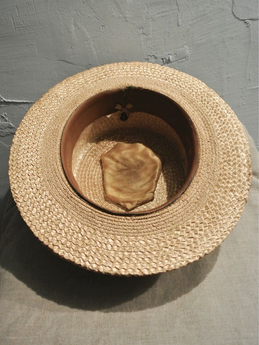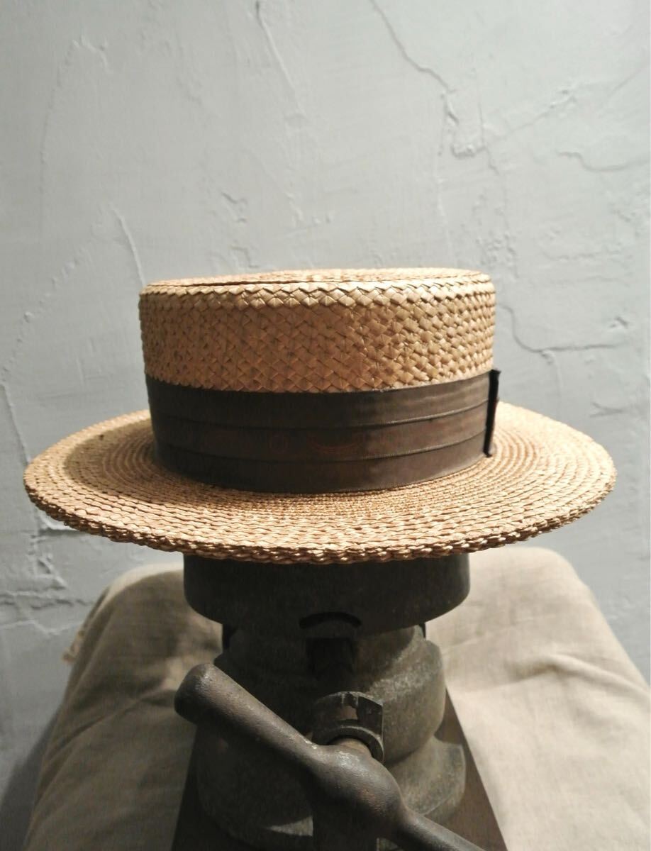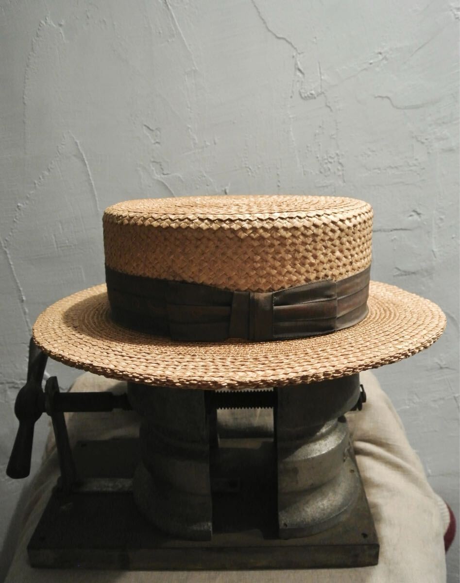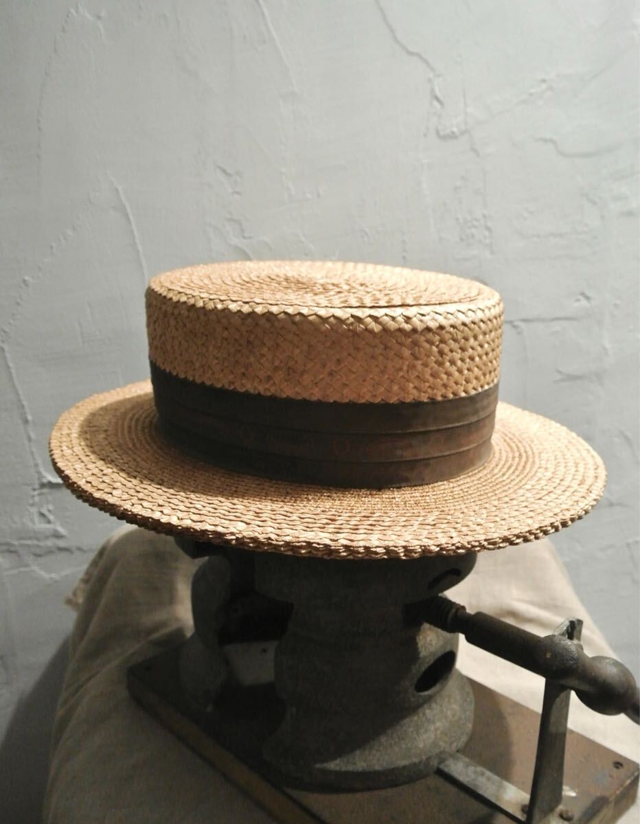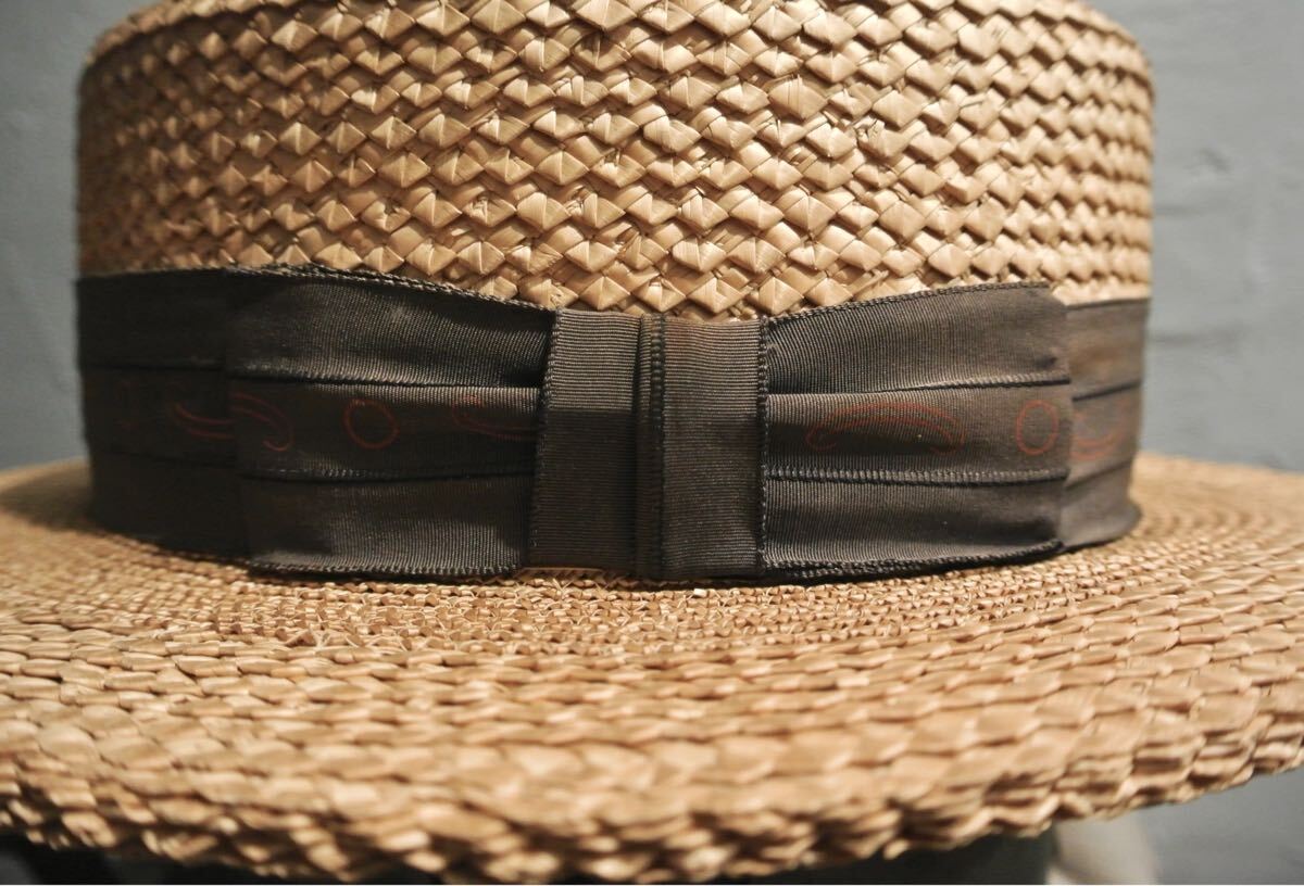 40s Vintage stetson boater hat 1/2 60cm ヴィンテージ ステットソン ボーターハット カンカン帽 柄 チャコールグレー 墨黒 ストロー 收藏