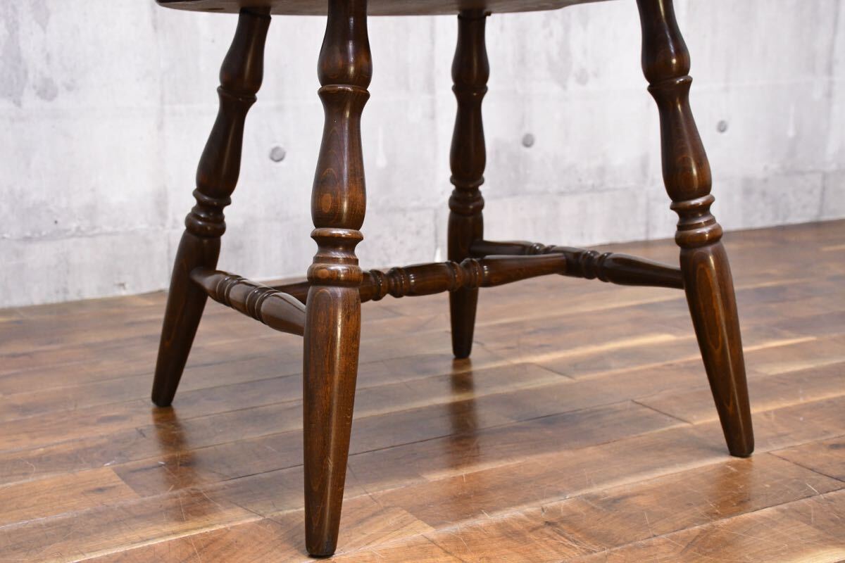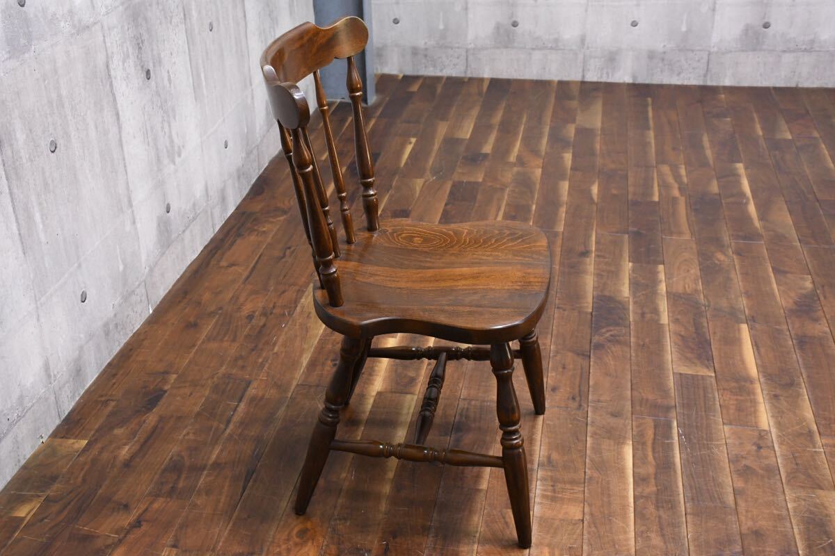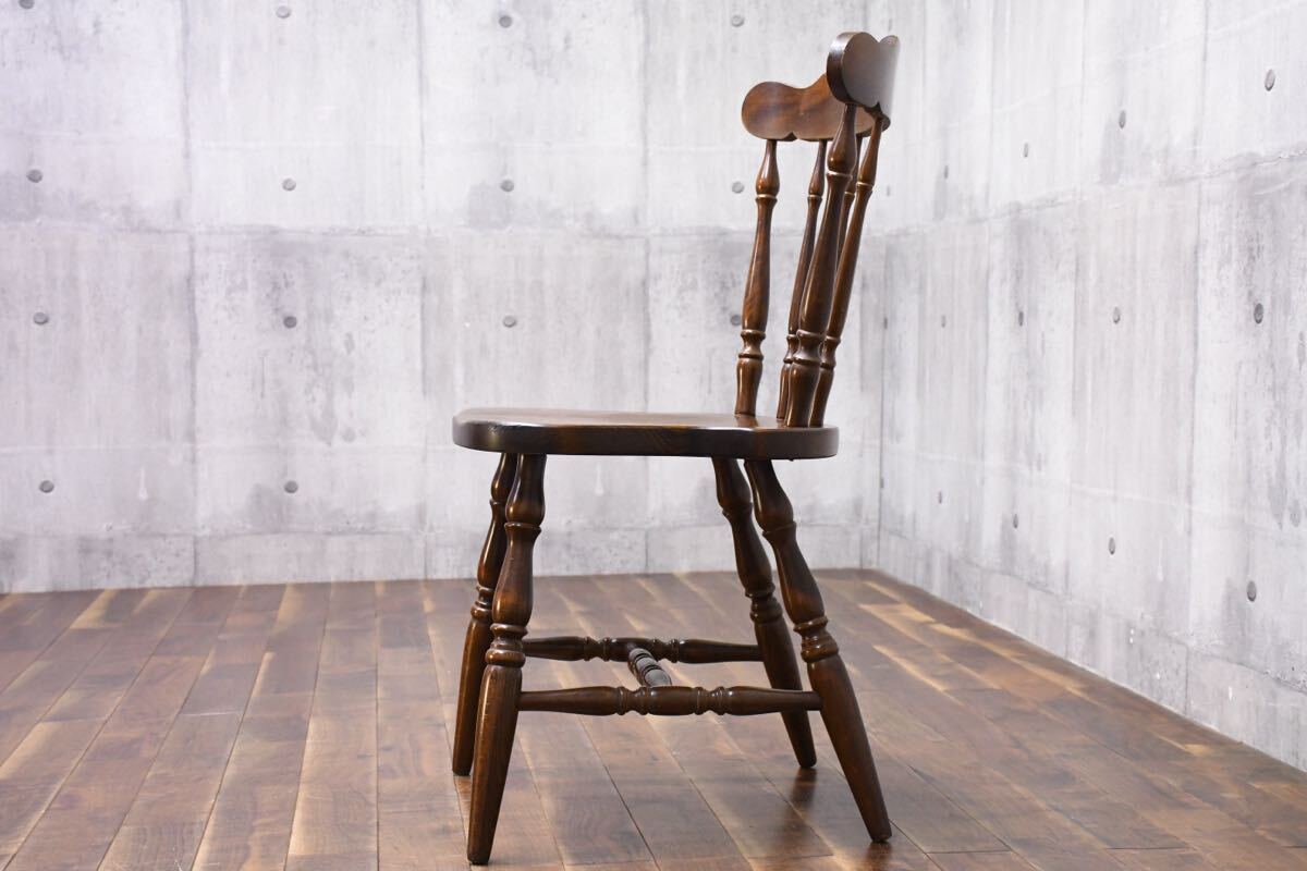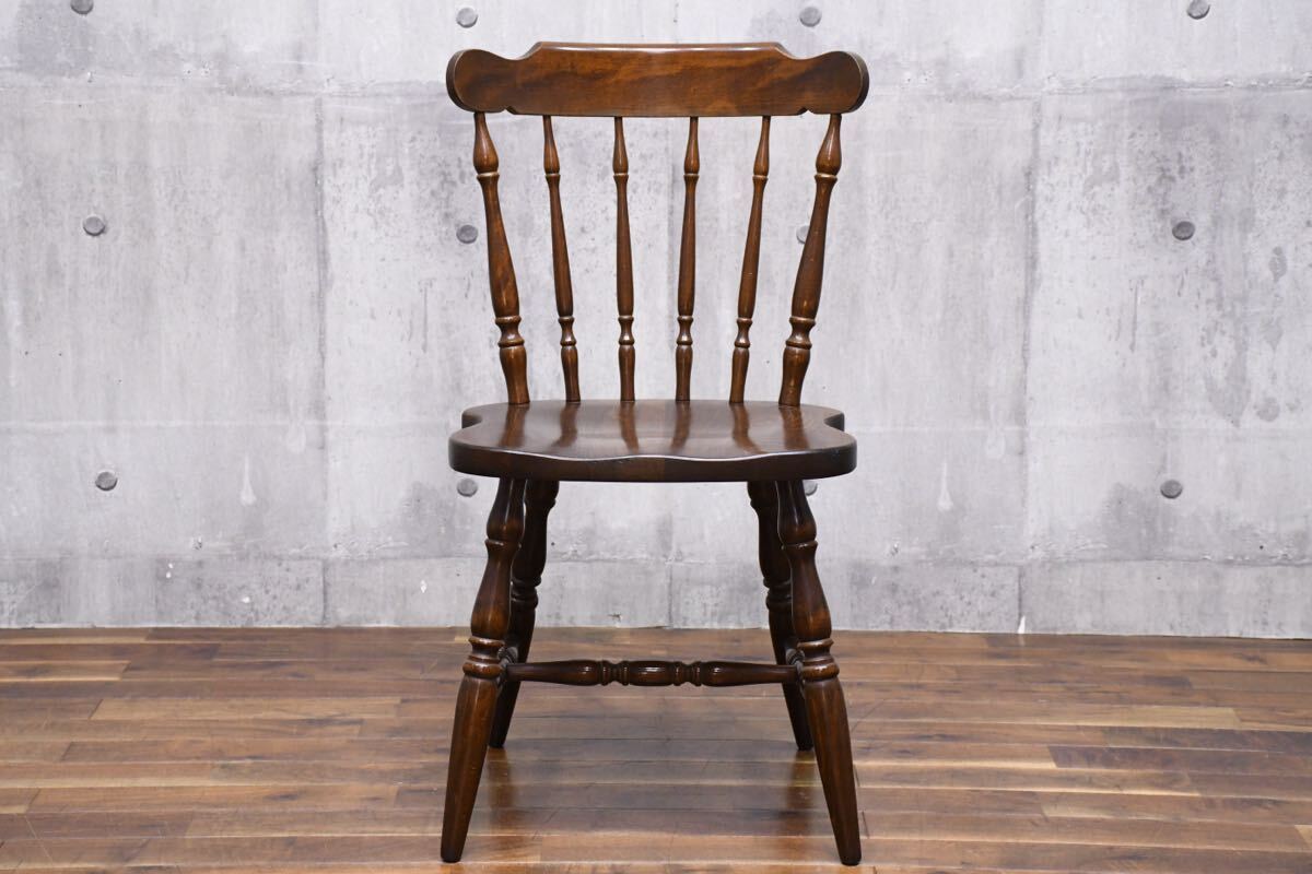 ゆったりと身体を抱きこむようなフォルム、ロクロの柔らかな丸みからは木の優しさが伝わる、カントリー調のダイニングチェアです。