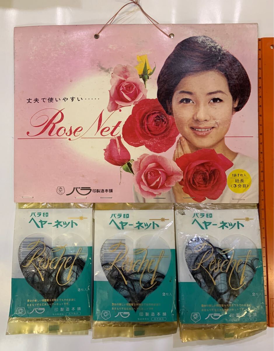 昭和レトロ ヘアーネット バラ印製造本舗 高木商店 ワンダフルネット2枚入 26枚台紙付き ローズヘアネット2枚入 12枚台紙付き 收藏