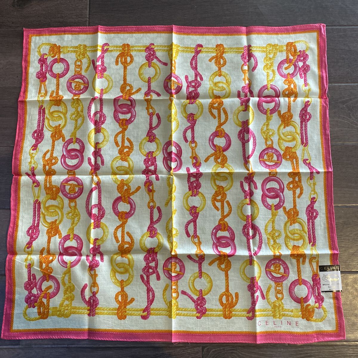 CELINE セリーヌ ハンカチ 大判 ブランド ミニスカーフ ハンカチーフ 大判ハンカチーフ 未使用 ピンク 收藏