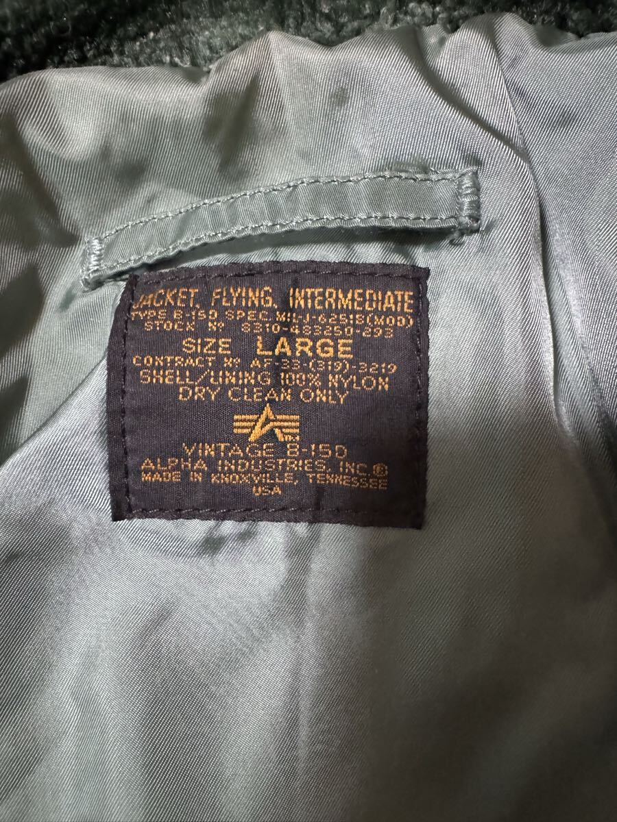 ALPHA INDUSTRIES 米国製 50's復刻 TYPE B-15D フライトジャケット Lサイズ セージグリーン