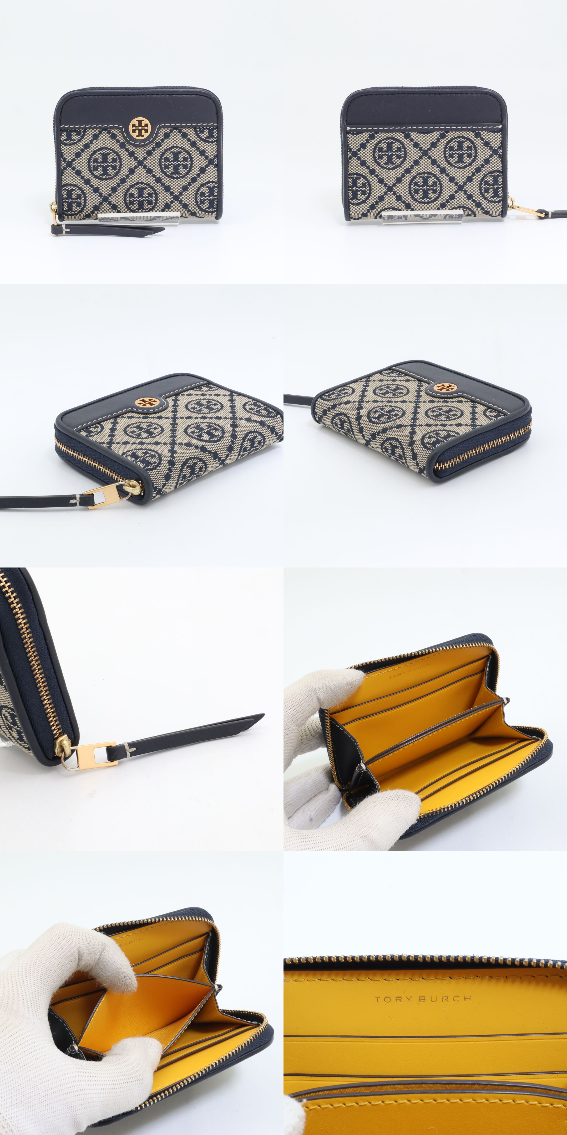 美品 トリーバーチ TORY BURCH Tモノグラム ジャガード×レザー コインケース コインパース 小銭入れ 財布 ネイビー レディース 收藏