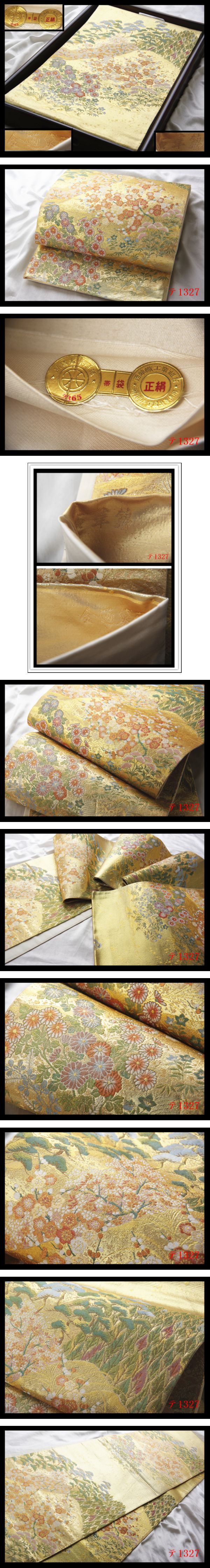 蔵【テ1327】西陣逸品 やまひで 百華錦 金色地 気品豊かに 正絹純金糸全通高級美術袋帯 ◇検◇簪着物名古屋帯和装小物帯締め 收藏