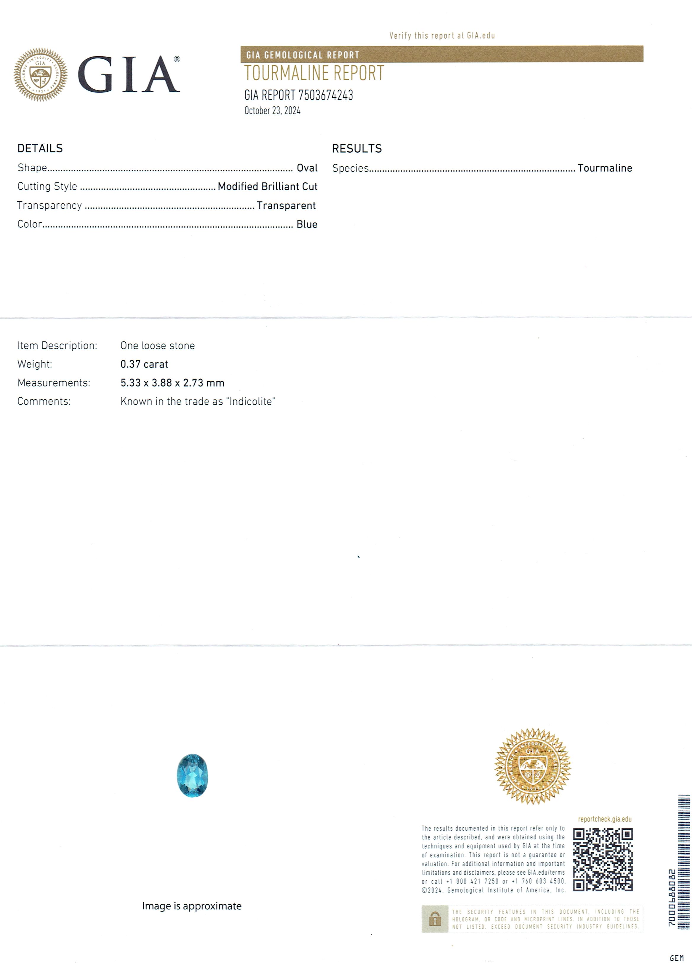 特級パライバエイトリータ色 0.370ct 天然インディコライトトルマリン GIA鑑別書付 天然ダイヤ プラチナリング 動画 送料込 收藏