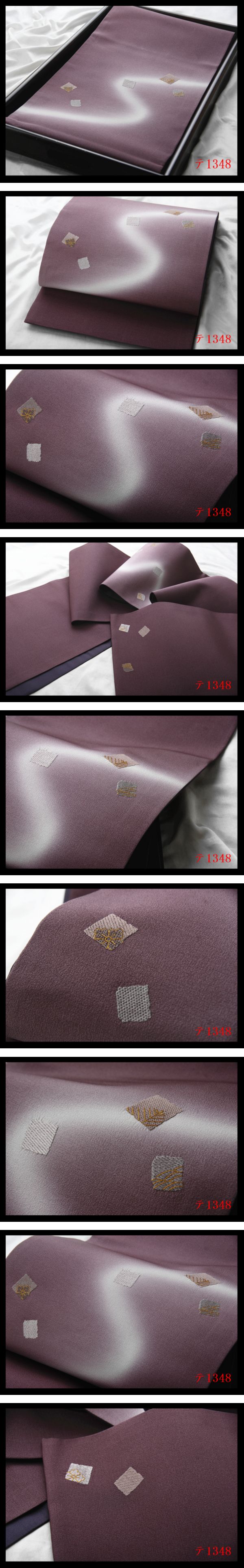 蔵【テ1348】西陣逸品 手織 花菱紋 葡萄鼠色地 お洒落な 正絹純金糸太鼓柄高級美術袋帯 新品同様◇検簪着物名古屋帯和装小物帯締め 收藏