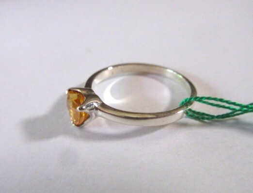 明るいオレンジ色のハート形スペサルティン・ガーネットです。インクルージョンがありますが、透明感とテリがあります。非加熱。