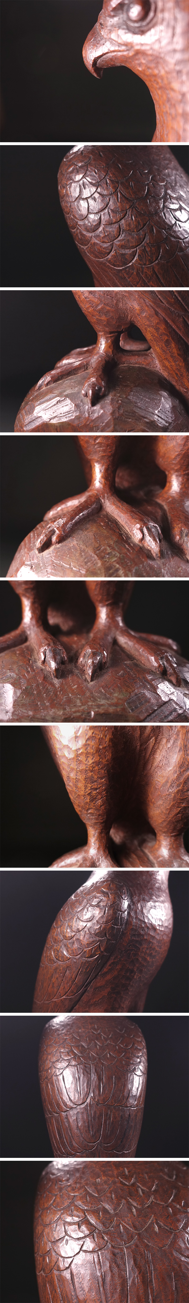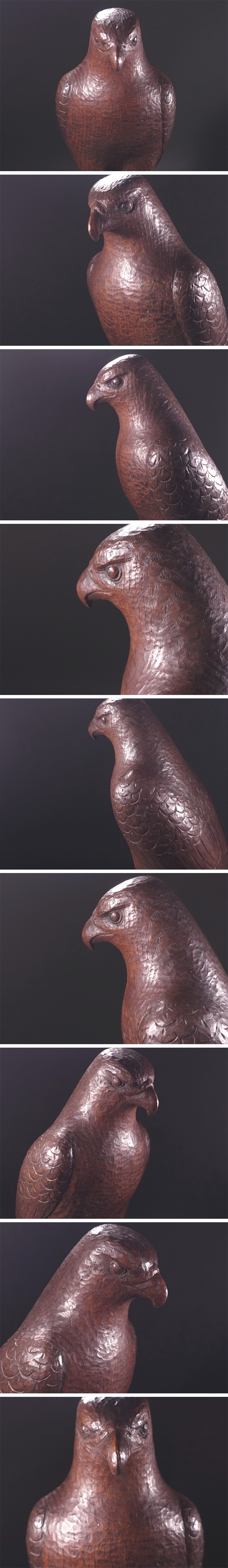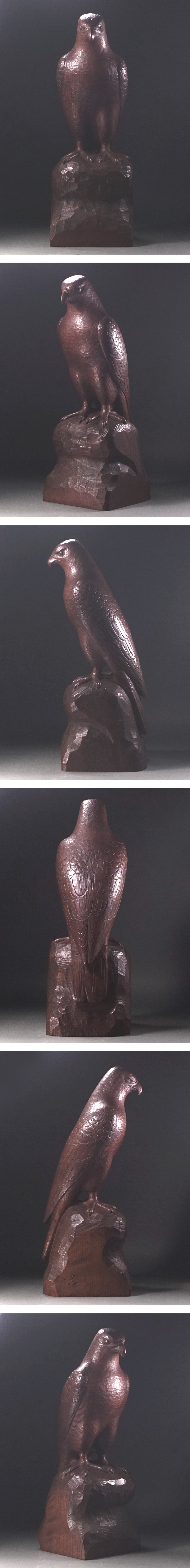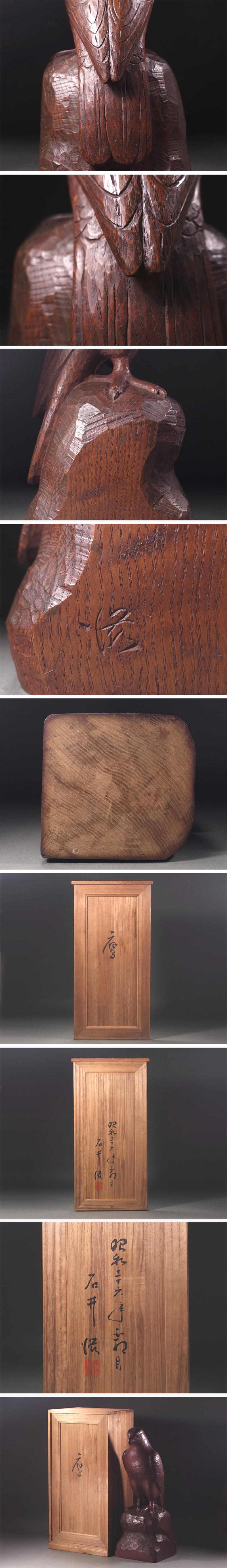 ∇花∇内藤伸門下の名彫刻家【石井滋】作 昭和36年(1961年)木彫一木造 近代写実彫刻「鷹」 共箱付 高さ41.5cm 收藏