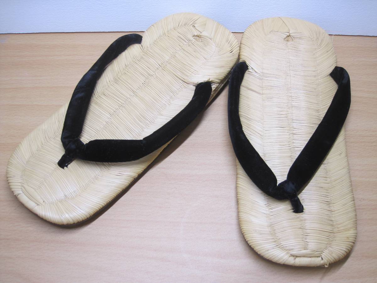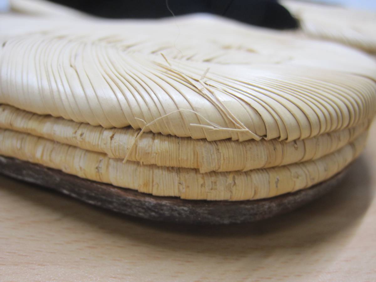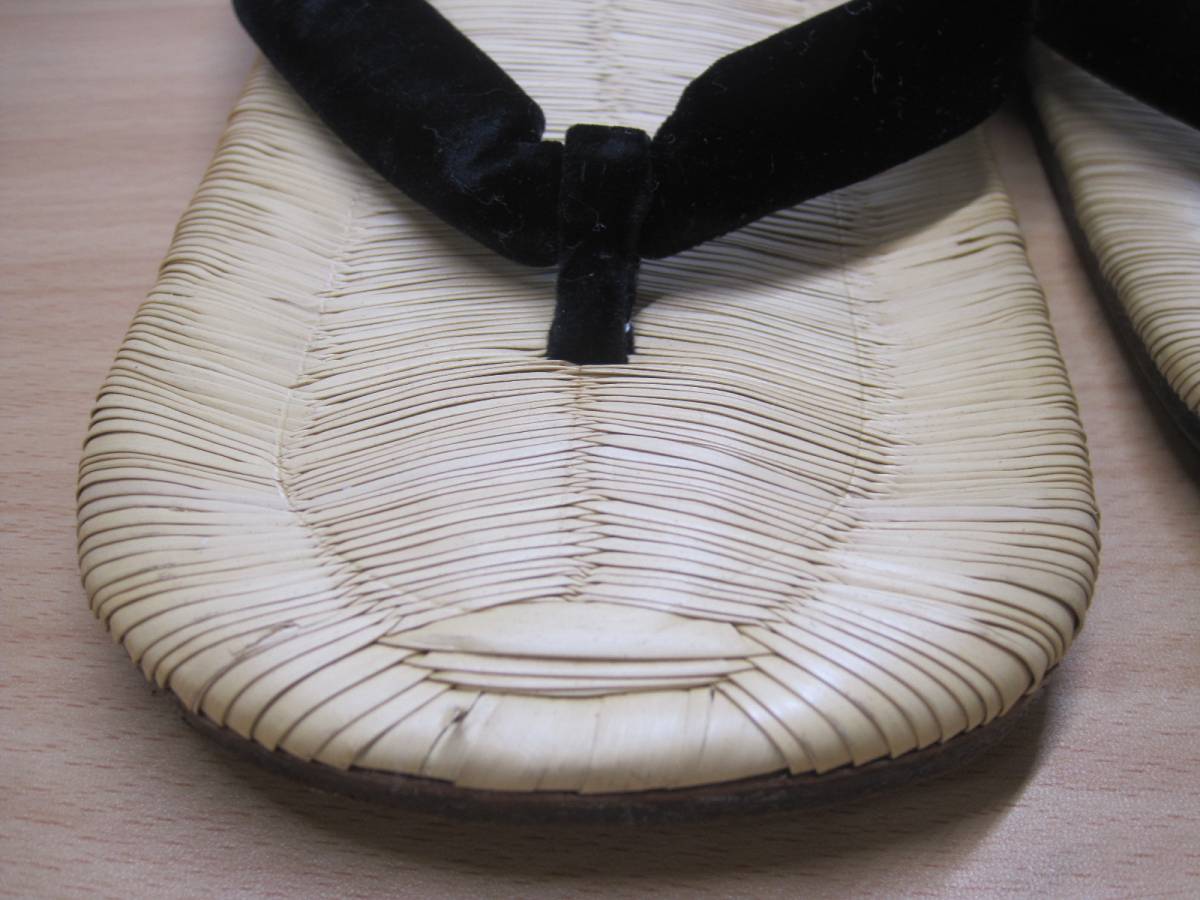 ●整理 3/高級 雪駄 本畳 はね田 革底 23cm 底革張り ベロア 黒 和装小物 メンズ 履物●現状品