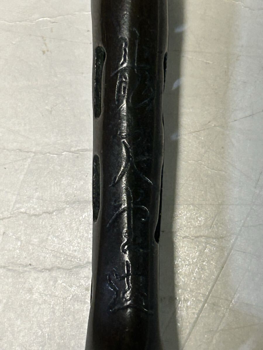 時代書道具 龍文堂造 透かし 矢立 15cm 銅製 象嵌