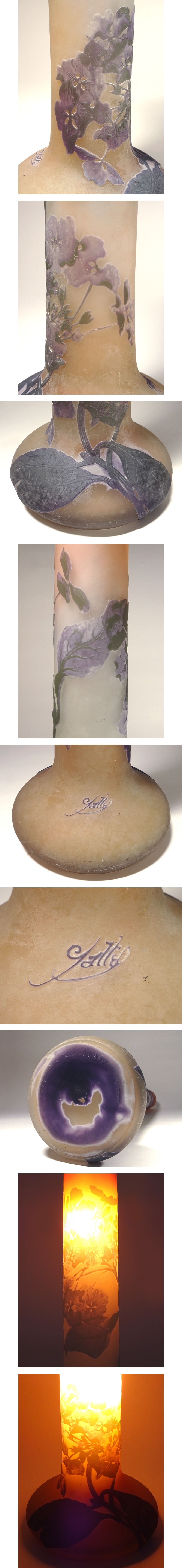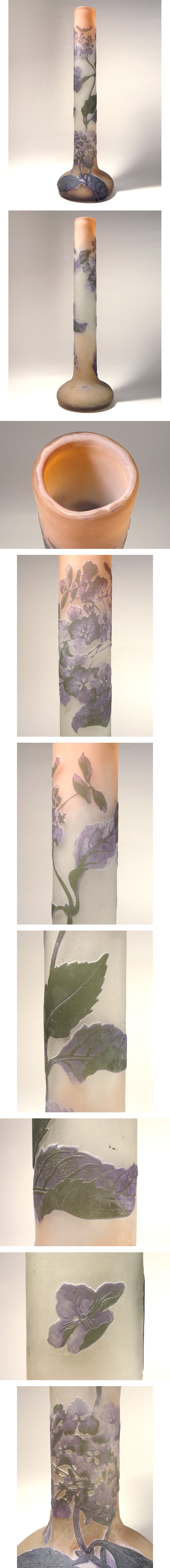 慶應◆20世紀初頭【Emile Galle エミール・ガレ】ジャポニズム 被せガラスにアシッドエッチング アジサイ文花瓶 高さ59.5cm 收藏