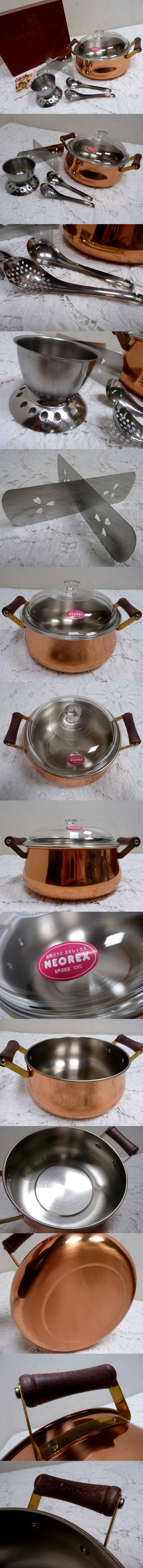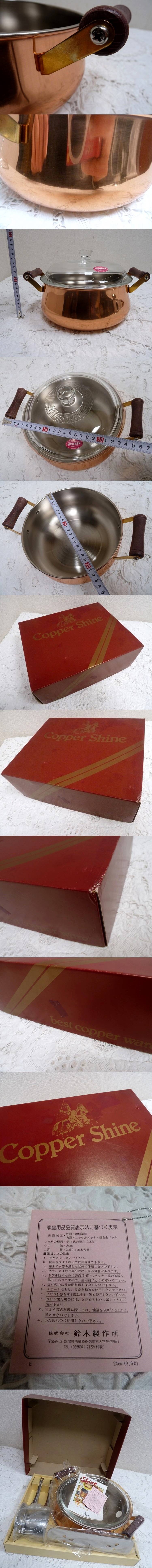 (☆BM)銅製(0228-③)両手鍋 24㎝ 3.6L レードル 間仕切り付 鈴木製作所 輝シリーズ 湯豆腐 カレー シチュー レトロ 調理器具 ガラス蓋付き 收藏