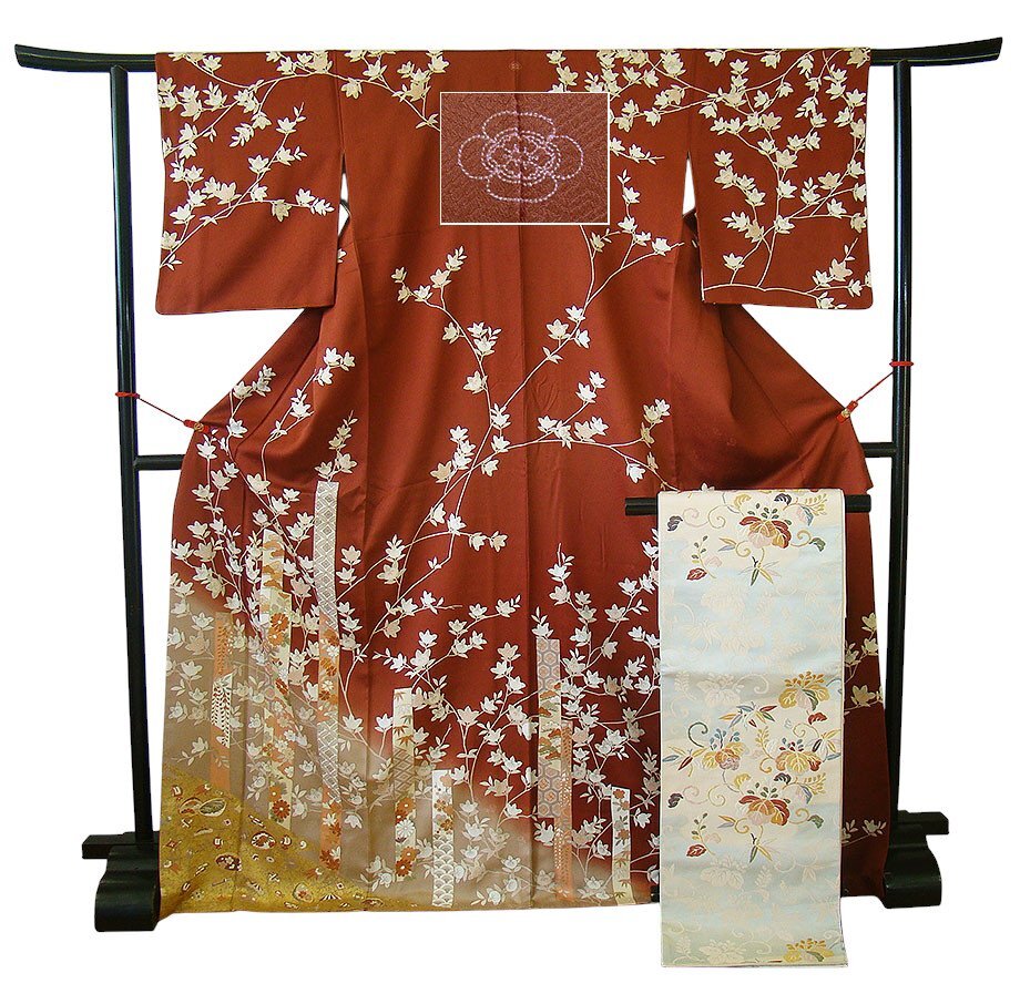 ※美しい着物姿を謳う上品な訪問着&袋帯&帯揚げ&帯〆豪華4点セットです。 どんなお客様にも好感度大の長く着られる一枚を大切に纏う醍醐味をご堪能下さいませ。 パーティー、慶事の宴、冠婚祭、結婚披露宴、お茶会、社交着、街着やお食事会等々。 40代~70代迄幅広く着用出来ます。身長152cm~158cmの着物通の貴女に最適です。 |