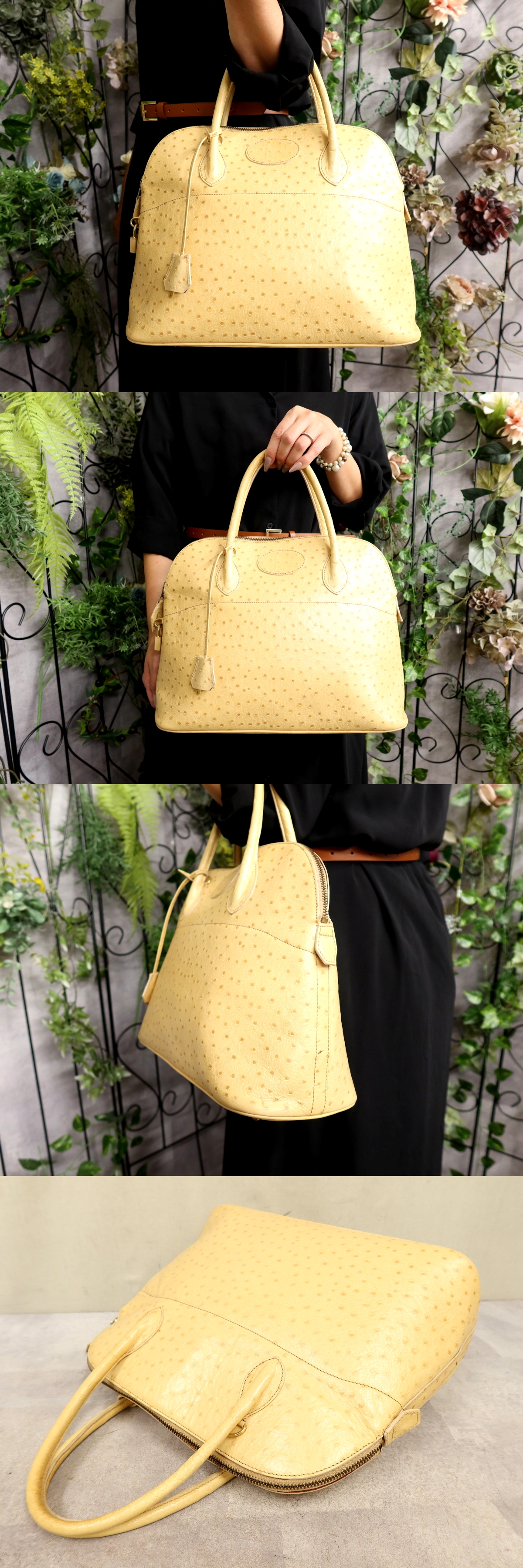 ●超美品●henry HIGH CLASS ヘンリーハイクラス●オーストリッチ 型押し レザー 本革●ハンド バッグ●イエロー系●G金具●A4●Js61216 收藏