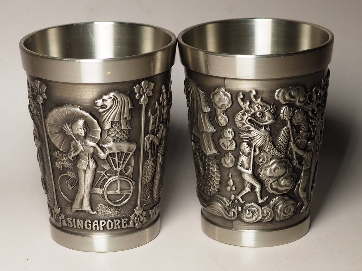 PEWTER ピューター 錫製 ペア グラス カップ 未使用 美品 GARDEN CITY PEWTER SINGAPORE 收藏