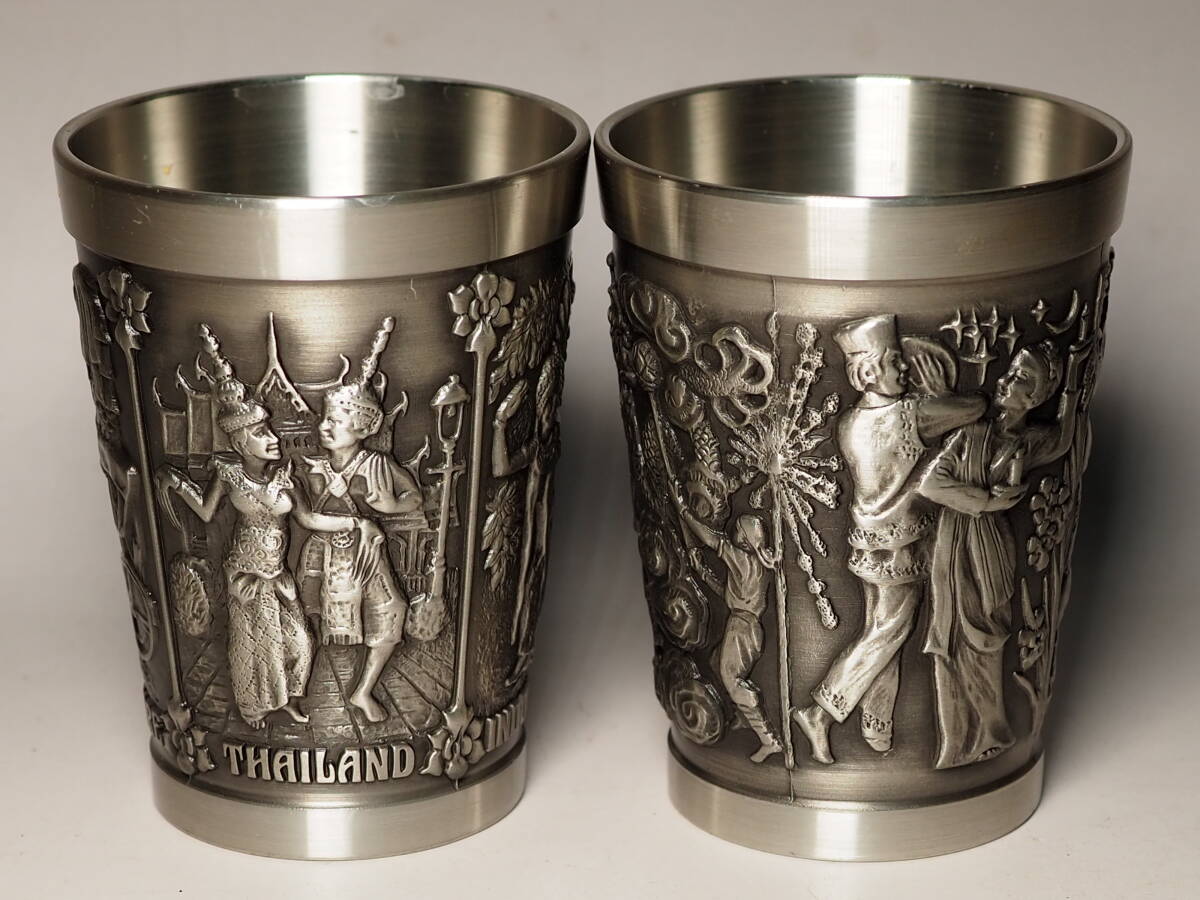 | PEWTER ピューター 錫製 ペア グラス カップ 未使用 美品 GARDEN CITY PEWTER SINGAPORE | |