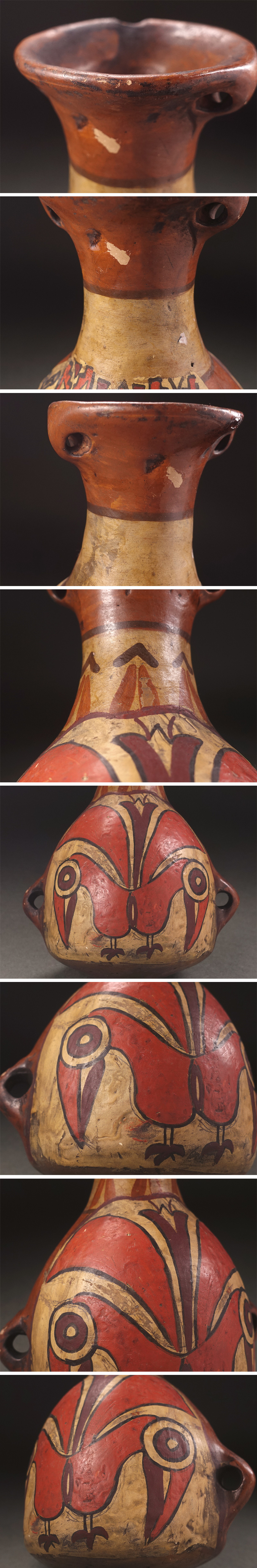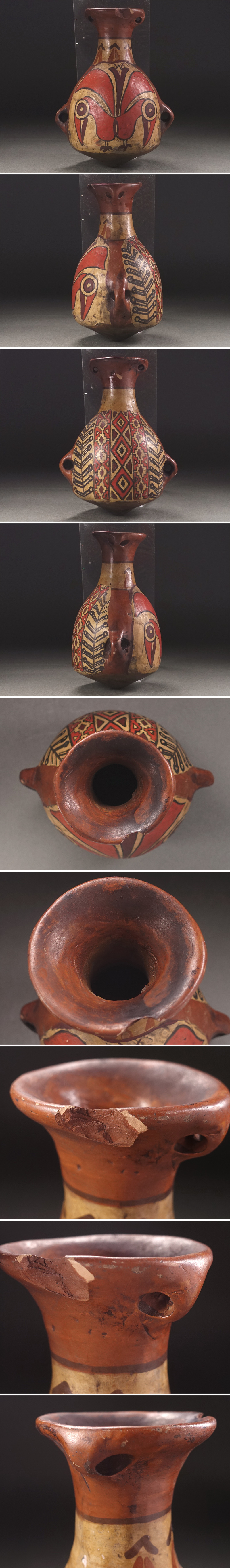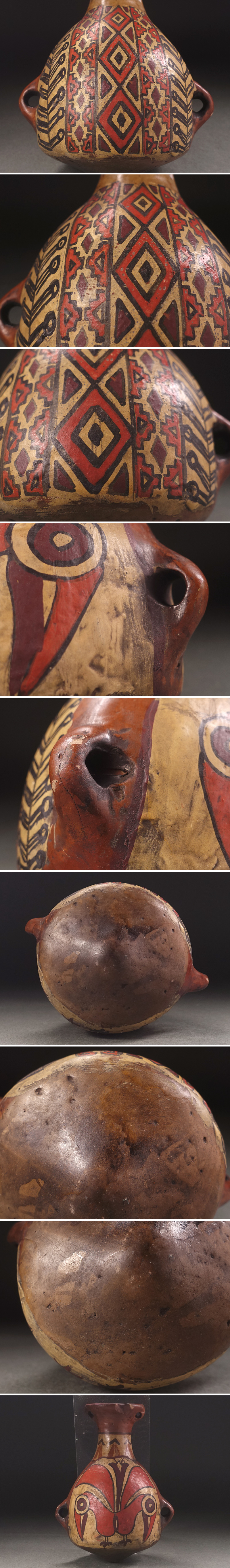 ∇花∇古代アンデス遺物 13~16世紀頃 ペルー・インカ文化 尖底彩文土器(アリバロ) 加彩双鳥文耳付壷 收藏