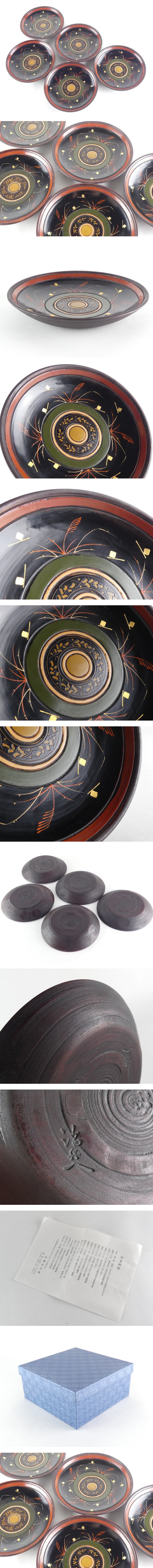 【都屋】村瀬治兵衛 独楽塗 千菓子器 5客 幅 約16.5cm 菓子皿 1023 R102 收藏