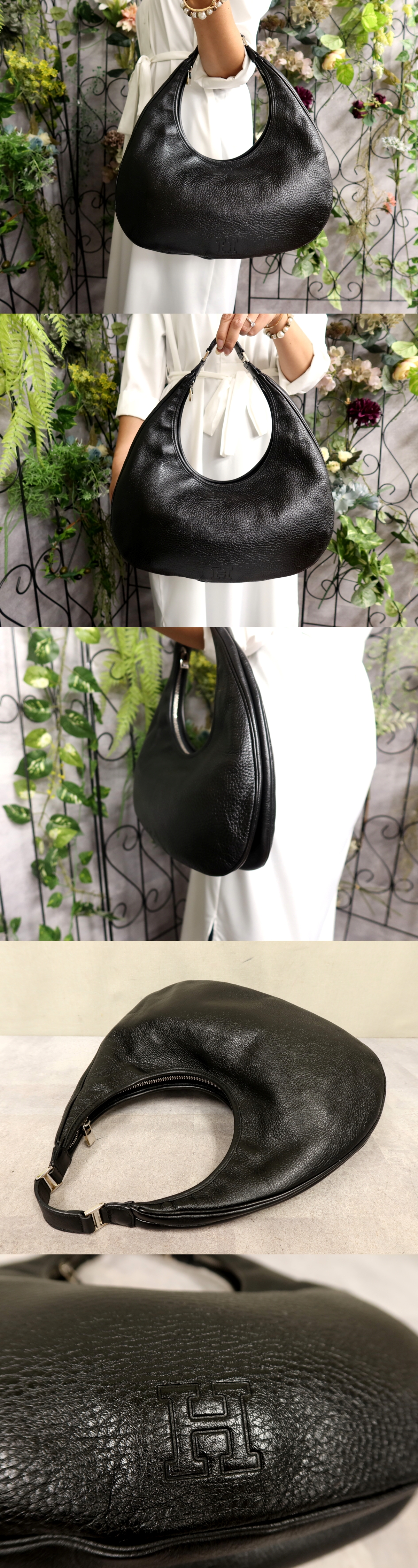 ●超美品●HIROFU ヒロフ●ロゴ型押し●カーフ レザー 本革●ワンショルダー バッグ●黒●シルバー金具●腕掛け●収納 かばん●Js61398 收藏