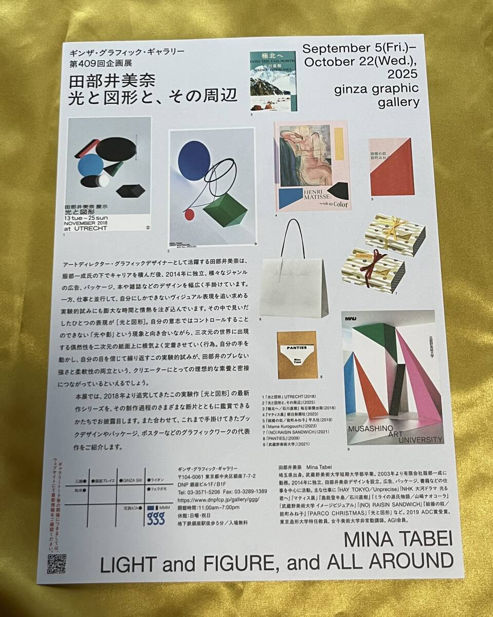田部井美奈 光と図形と、その周辺@ggg ギンザ・グラフィック・ギャラリー 2025/9/5-10/22 チラシ2枚セット MINA TABEI 收藏