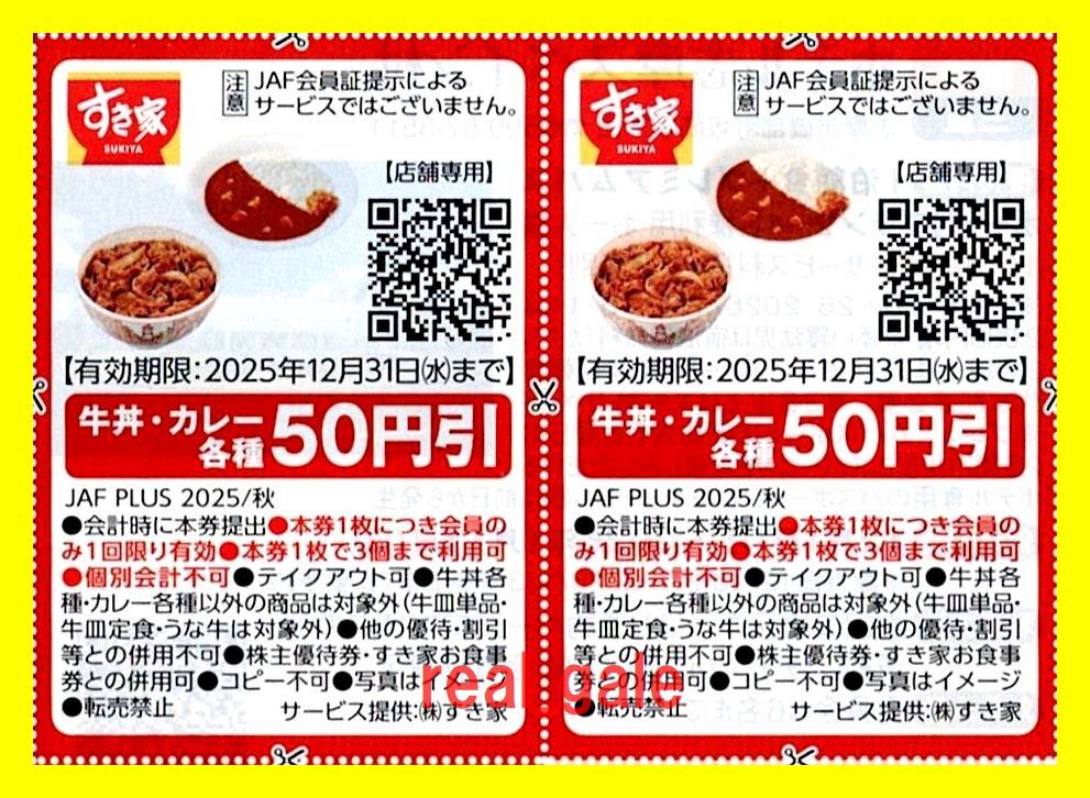 ■■送料無料■■すき家 牛丼/カレー各種 50円割引券×2枚■最大300円引き■店内・テイクアウト可能■2025年12月31日まで■ 收藏