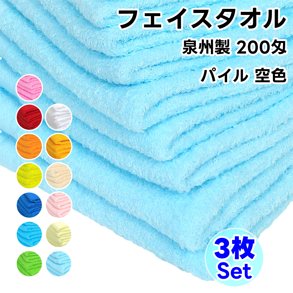 タオル フェイスタオル ソフトタオル 空色 3枚セット 200匁 総パイル 日本製 まとめ買い 泉州製 薄手 無地 綿100% 收藏