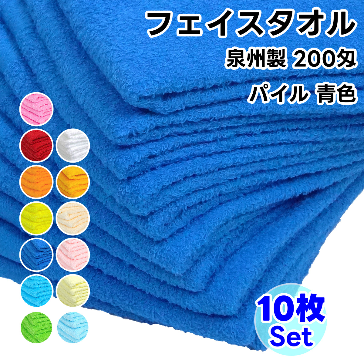 タオル フェイスタオル ソフトタオル 青色 10枚セット 200匁 総パイル 日本製 まとめ買い 泉州製 薄手 無地 綿100% 收藏